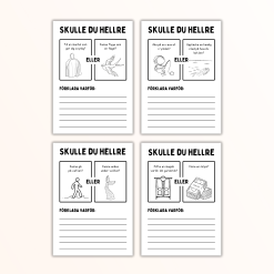 Den frågan och 10 andra får eleverna klura på när de gör dessa arbetsblad. Perfekt uppgift för elever som blir klara snabbt med ordinarie uppgift (och väldigt roligt att läsa i efterhand).