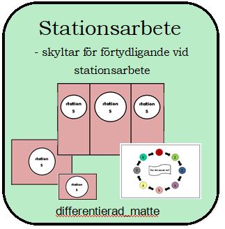 Organisera och förtydliga stationsarbetet. Detta organisations kit innehåller fyra delar . En bänkskylt som står vid stationen. En skylt till tavlan som kan sättas upp vid genomgången tillsammans med materialet för den stationen. Små kort som man kan ge till eleverna så de vet vilken station de ska gå till. Samt en skylt som förtydligar för eleverna till vilken station de ska gå till efter den de är på nu. Den kan läggas vid varje station.
