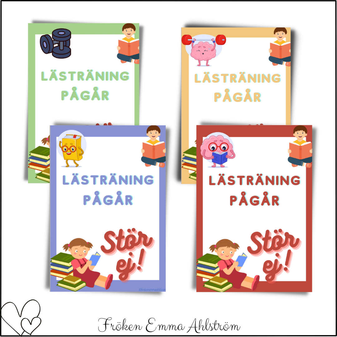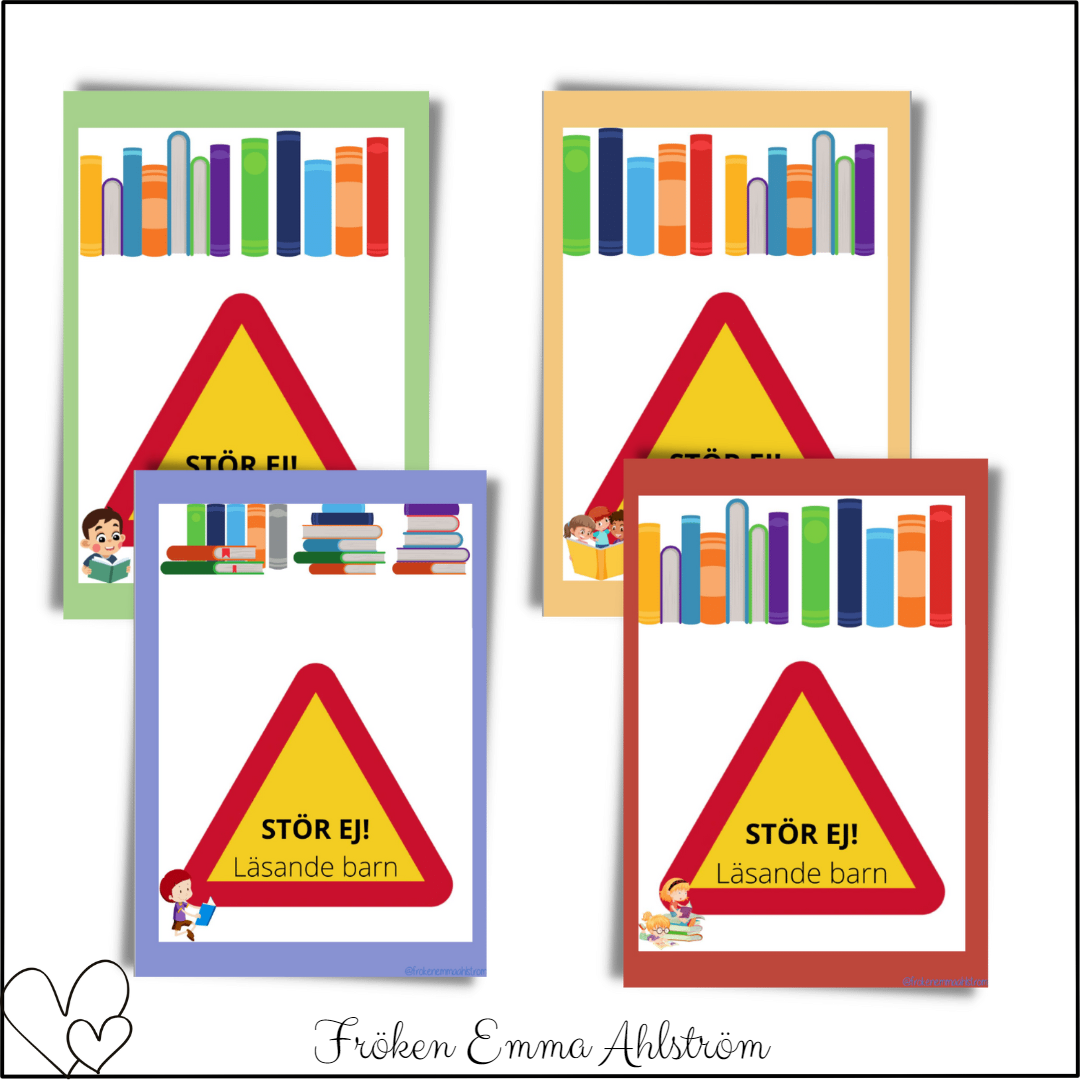 16 olika skyltar för att uppmärksamma läsning och lärande i klassrummet!
