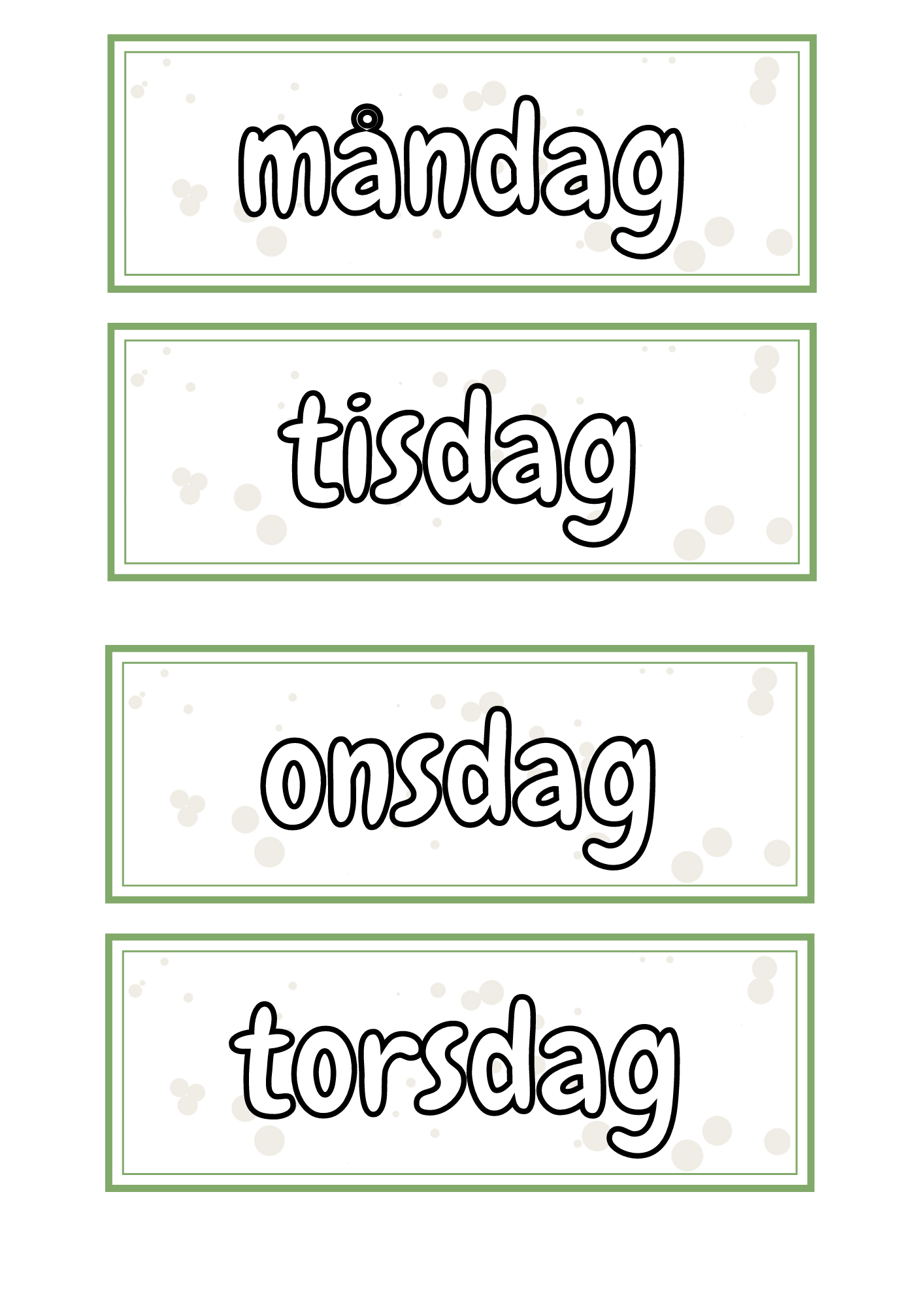 - Veckodagar, datum, månader, år