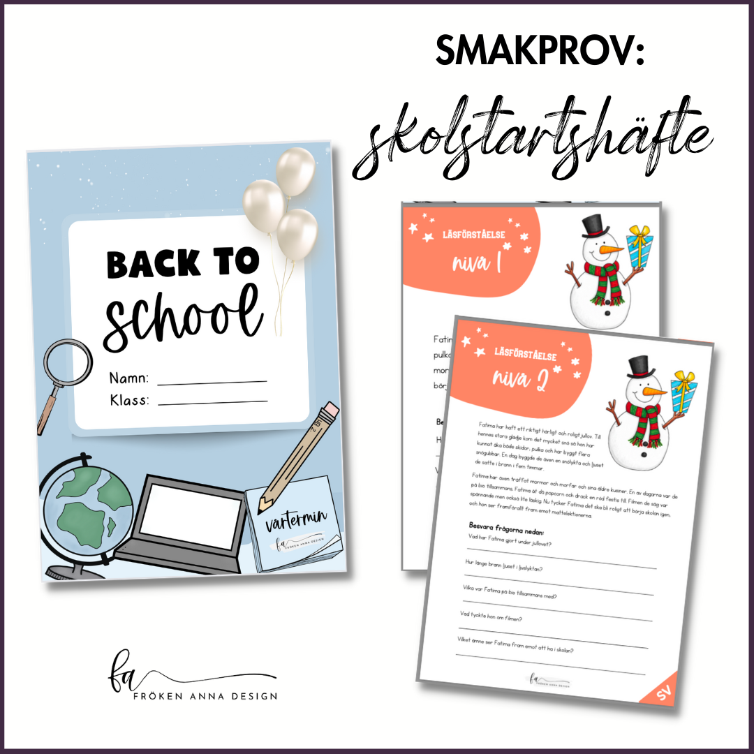 Ett smakprov på Skolstartshäftet och ett tillägg till dig som köpt det tidigare. Här får du tillgång till en alternativ fram- och baksida av häftet samt en ny läsförståelse att använda under vårterminen.