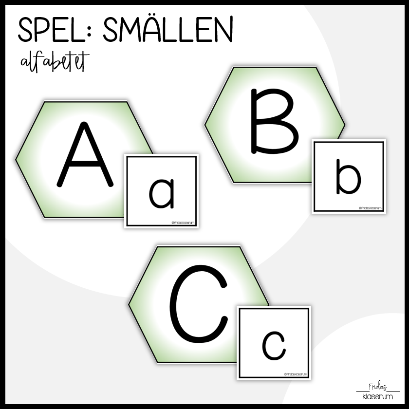 Spela ”Smällen”, använd materialet till en lektion utomhus eller använd hexagonerna som dekor i klassrummet för att bygga alfabetet på väggen.