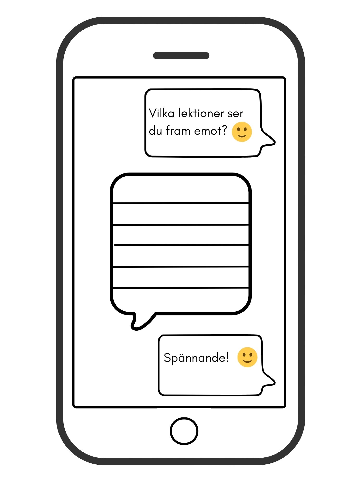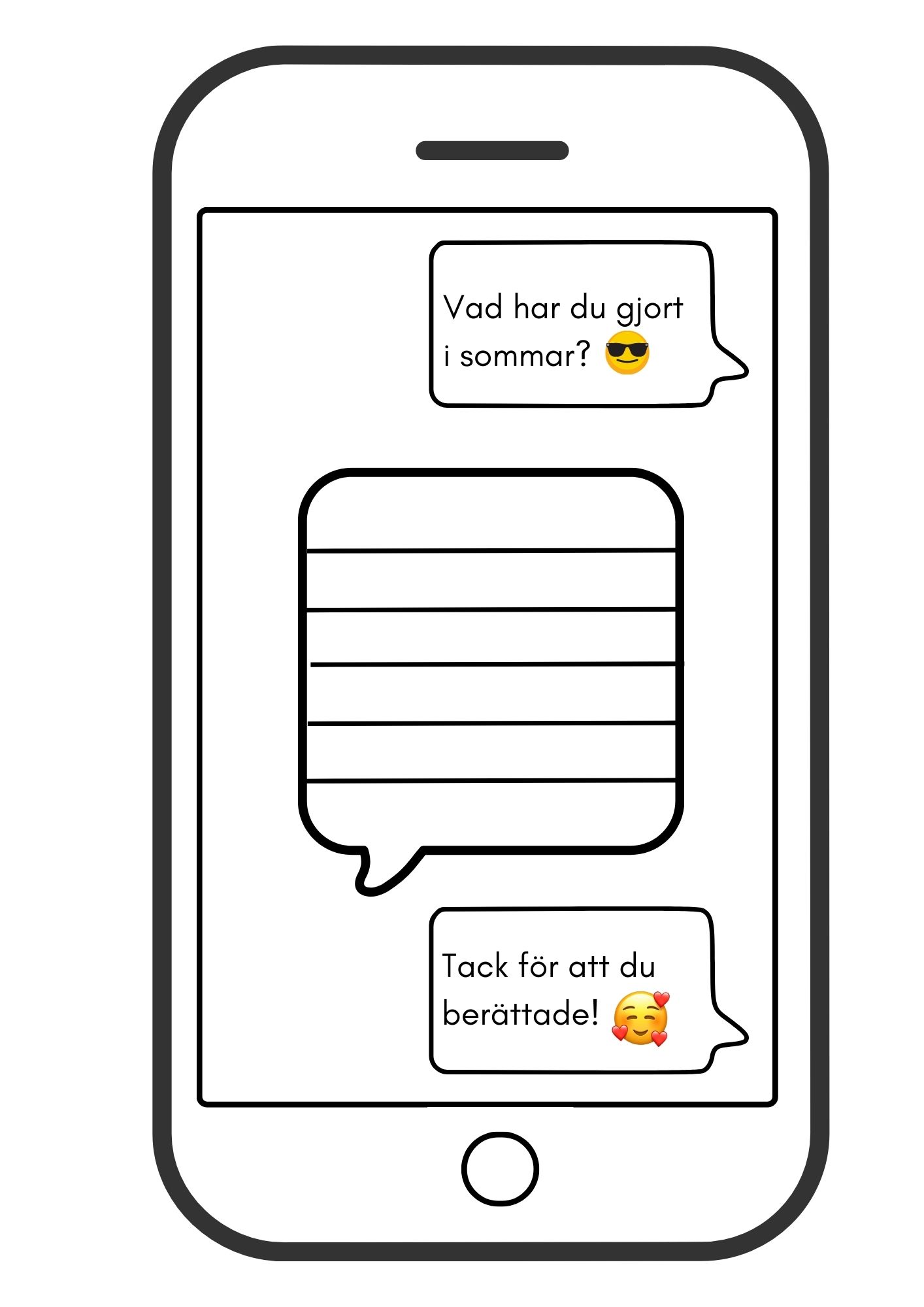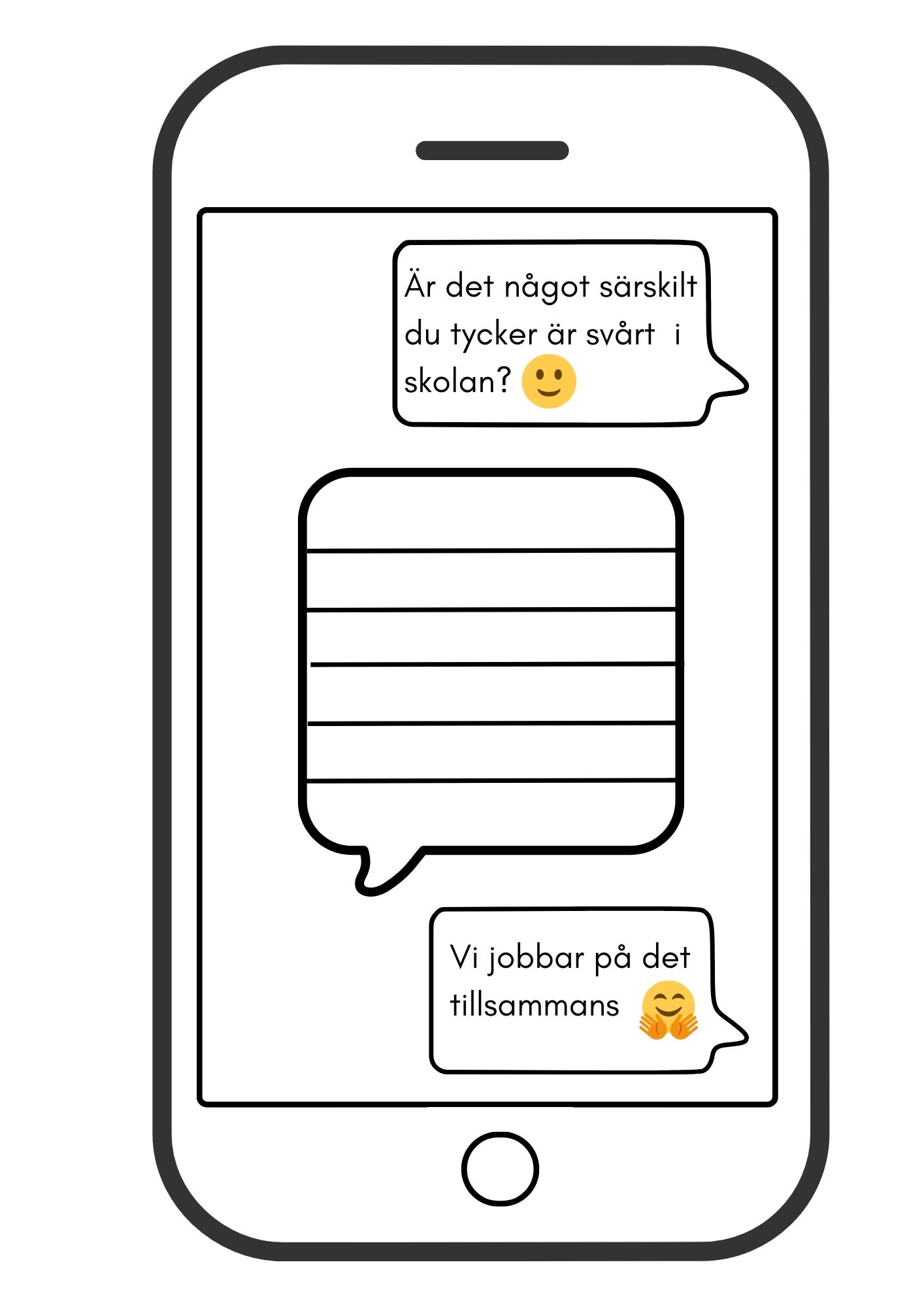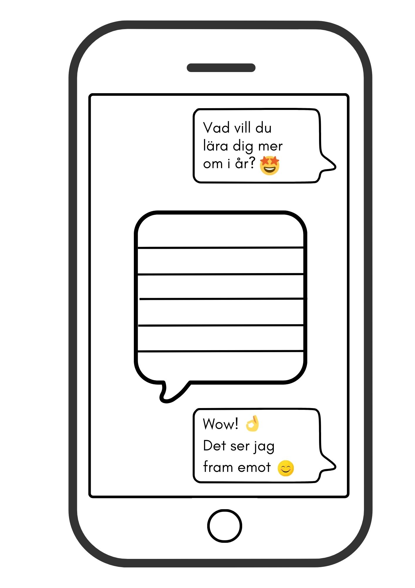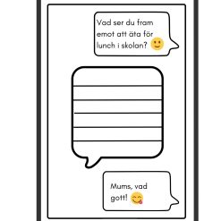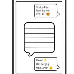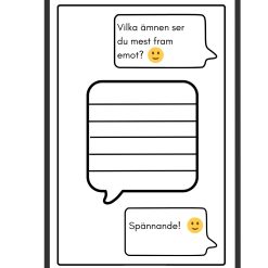 En flipbok i smartphone- format. Totalt 7 sidor med färdiga frågor som eleverna svarar på + framsida och baksida samt en tom mall för att fylla i egna frågor om man vill.
