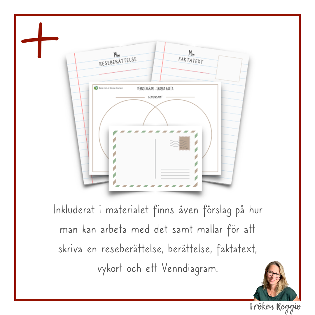 – Mallar för att utifrån faktatexterna skriva reseberättelser, berättelser, faktatexter, vykort och Venndiagram.