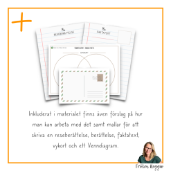 – Mallar för att utifrån faktatexterna skriva reseberättelser, berättelser, faktatexter, vykort och Venndiagram.