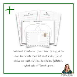 – Mallar för att utifrån faktatexterna skriva reseberättelser, berättelser, faktatexter, vykort och Venndiagram.