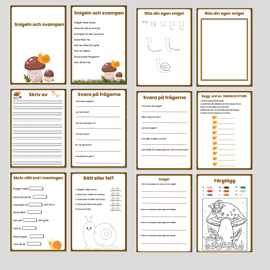 Detta ingår i Snigeln och svampen- läs, skriv och skapa