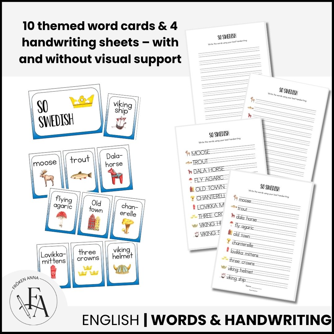 I detta material utvecklar eleverna både sitt ordförråd på engelska och får träning av sin handstil.