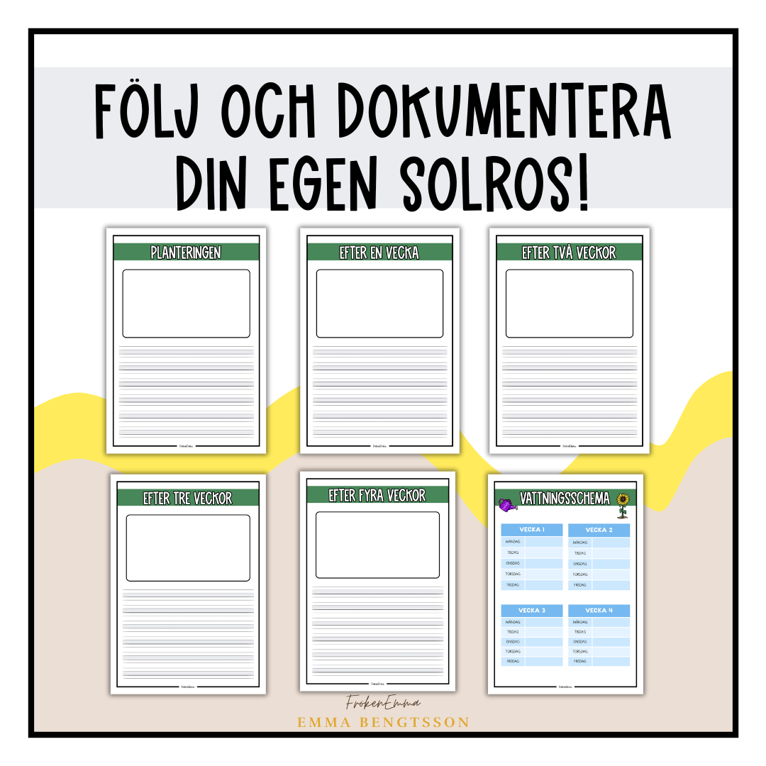 Ett klassiskt material där barnet får dokumentera sin egen solros från plantering till liten planta eller blomma.