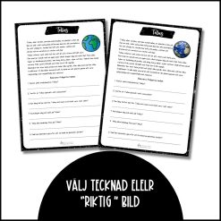 11 olika läsförståelsetexter om rymden med efterföljande frågor till. Det medföljer två olika versioner, en med en tecknad och en med en ”verklig” bild på varje planet / objekt.