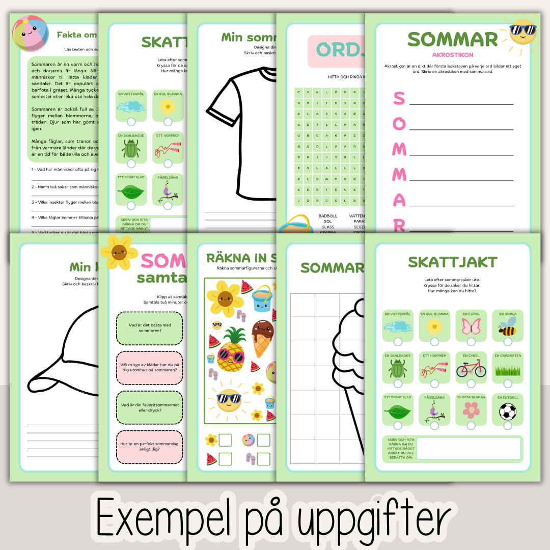 Ett arbetshäfte med roliga och kluriga uppgifter med sommartema.