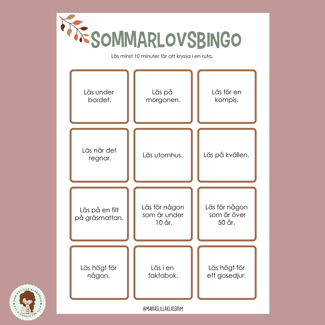 Glöm inte av läsningen under sommarlovet. Då är ett sommarlovsbingo toppen för att öka motivationen.