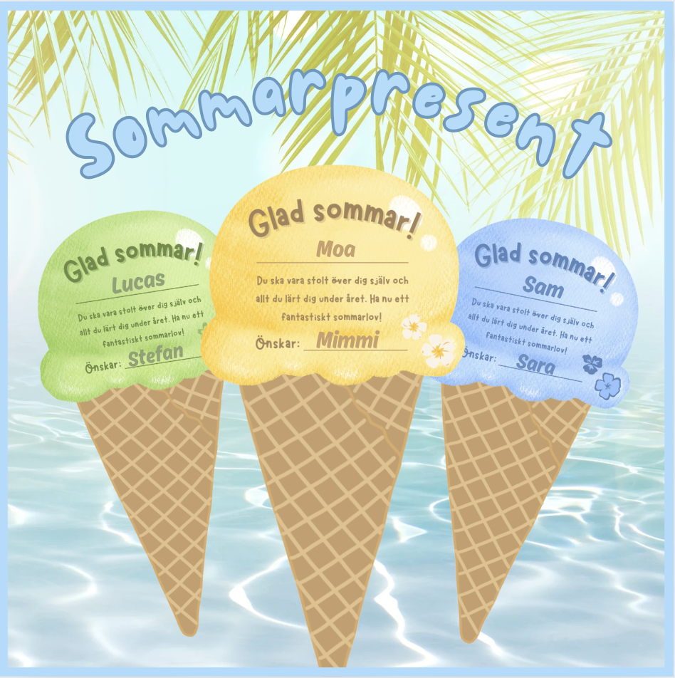 Glassar med 6 olika färger att klippa ut och laminera (eller skriva ut på tjockare papper) och ge som avslutningspresent inför sommarlovet.