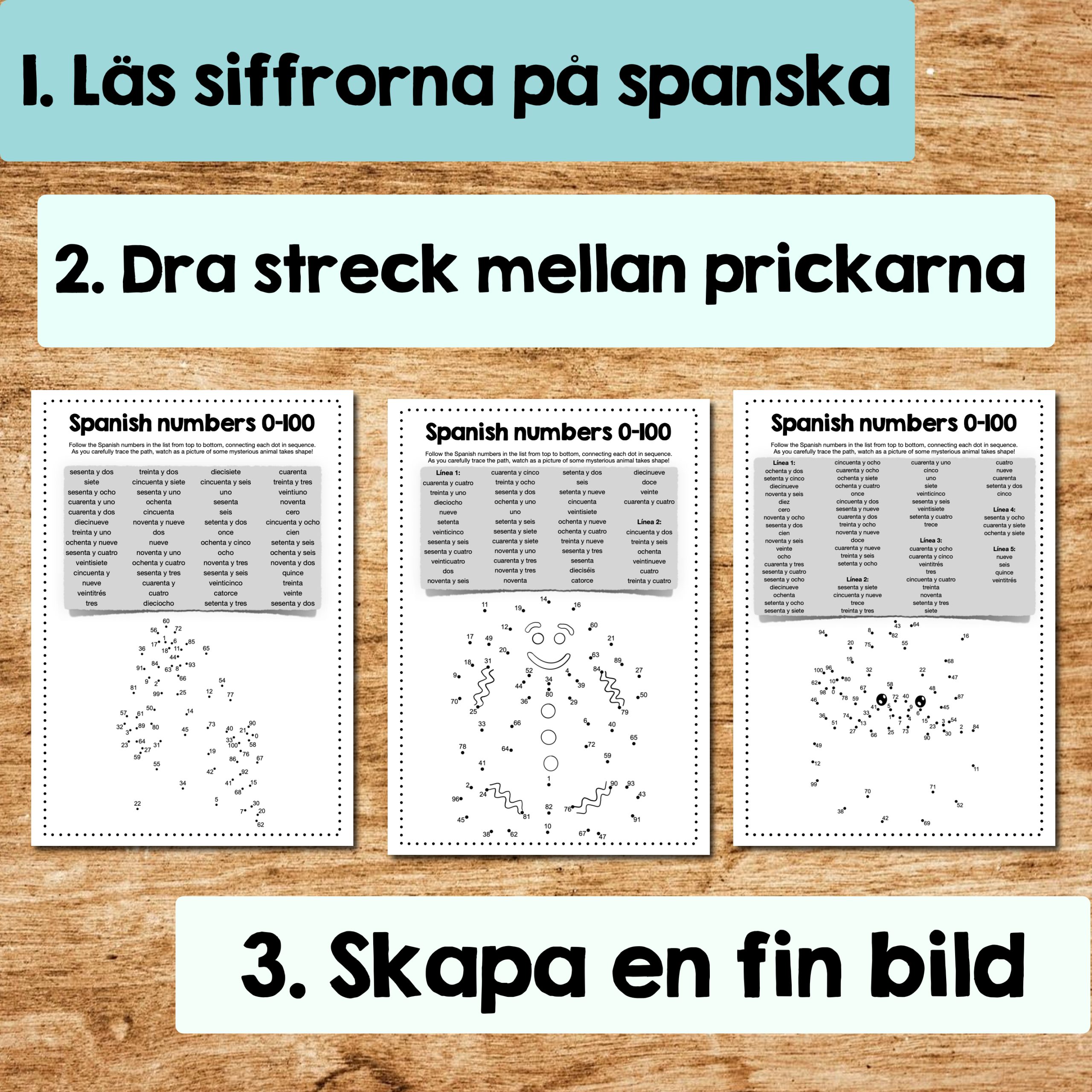 Med jultomten, en ren och en pepparkaksgubbe bjuder dessa arbetsblad på en perfekt kombination av lek och lärande. Eleverna får öva på att läsa och känna igen spanska siffror från 0–100 samtidigt som de tränar öga-hand-koordination och problemlösningsförmåga.