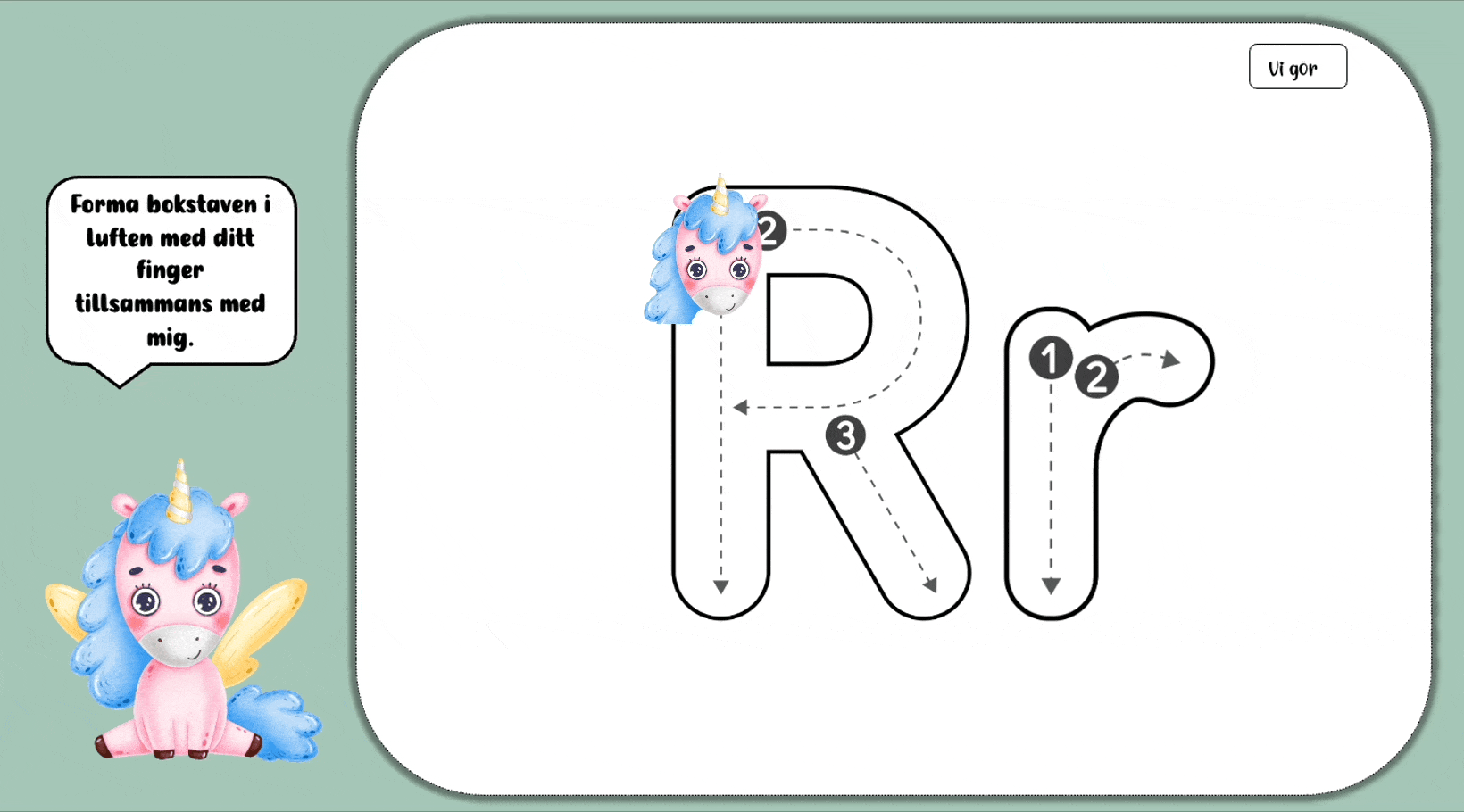 Låt eleverna spåra bokstaven i luften när ni tittar på presentationen eller använd på något annat roligt sätt.