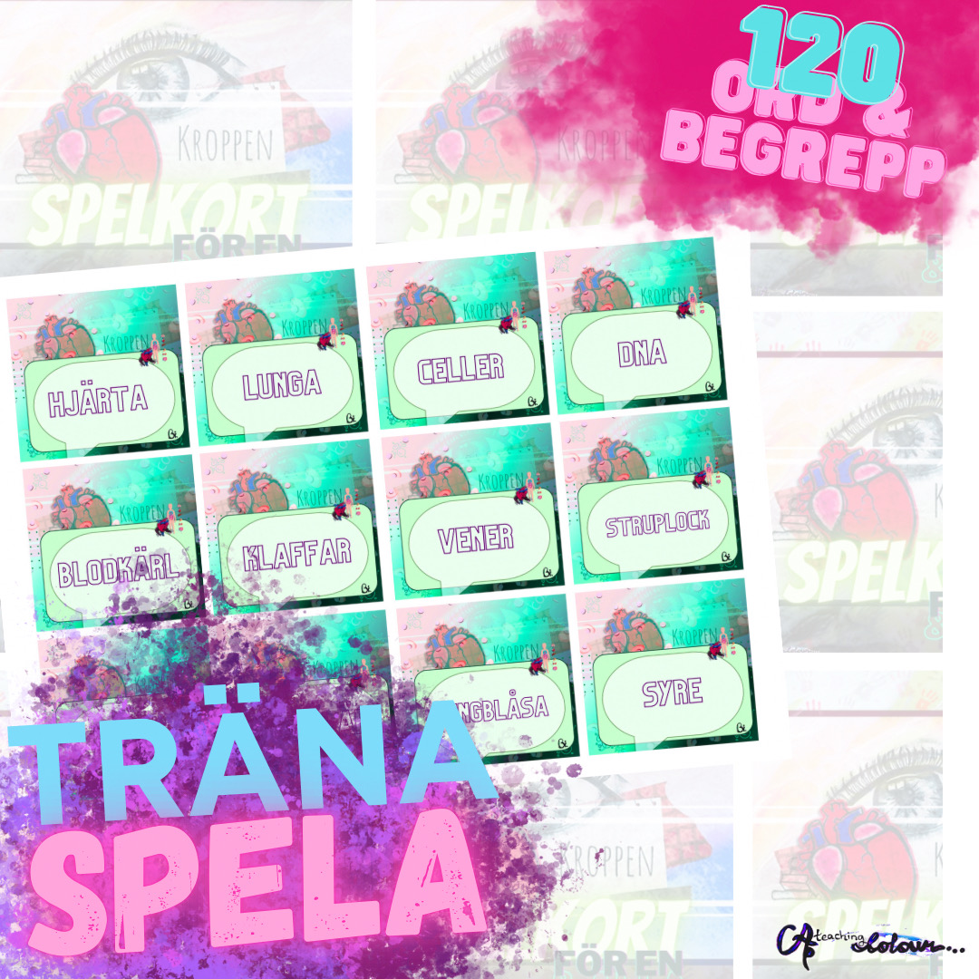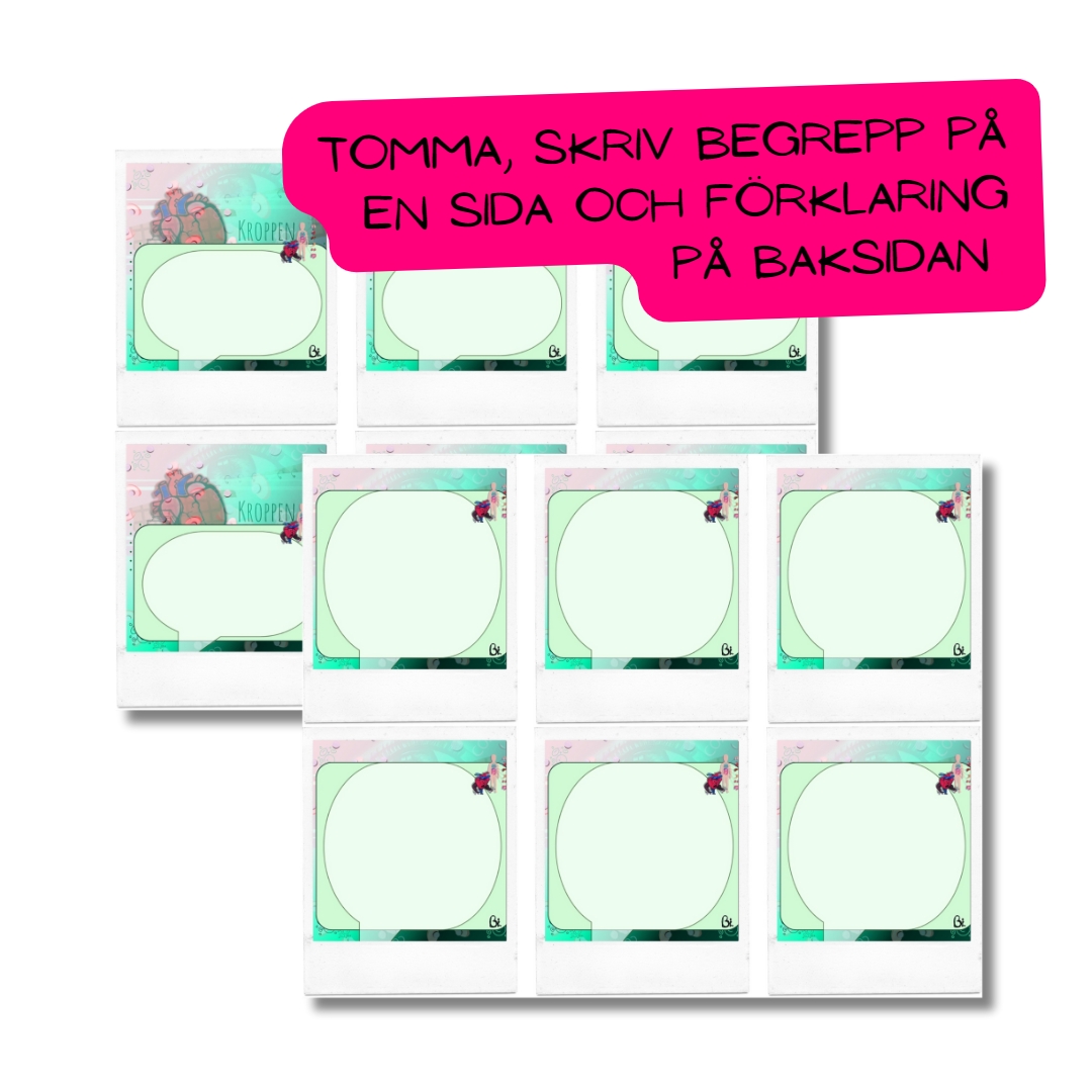 Begreppen handlar om kropp och hälsa och skriver man ut dubbelsidigt får man även en snygg baksida på kortet. Laddas ner inom 30 dagar i pdf-format.