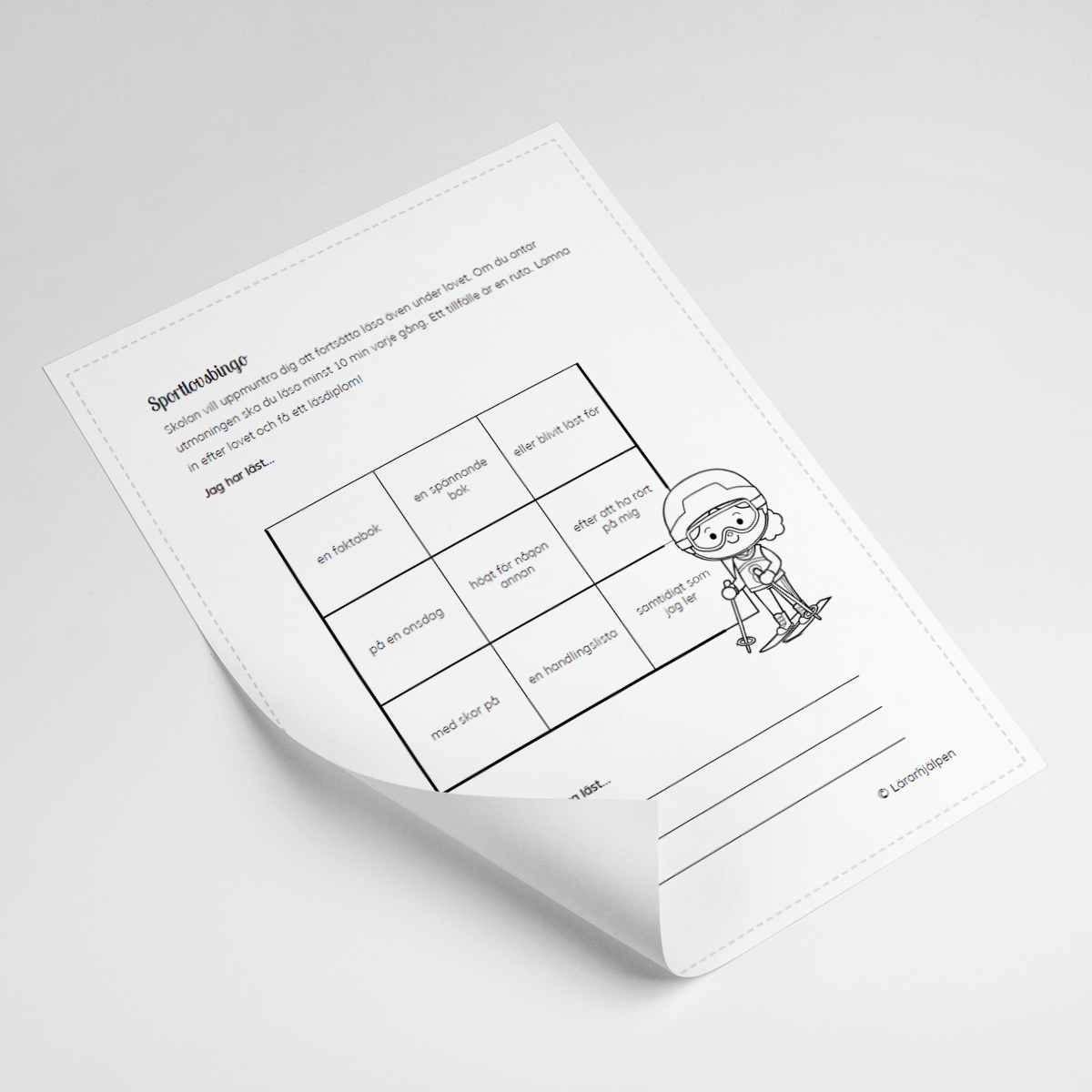 Om du vill uppmuntra dina elever att läsa under sportlovet kan du använda denna läsbingo med vintersporttema. Inkluderar både en version i färg och en svartvit.
