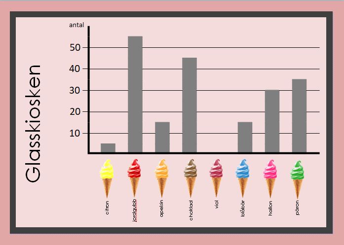 Ett stapeldiagram som visar försäljningen av glasskioskens glassar under en vecka.