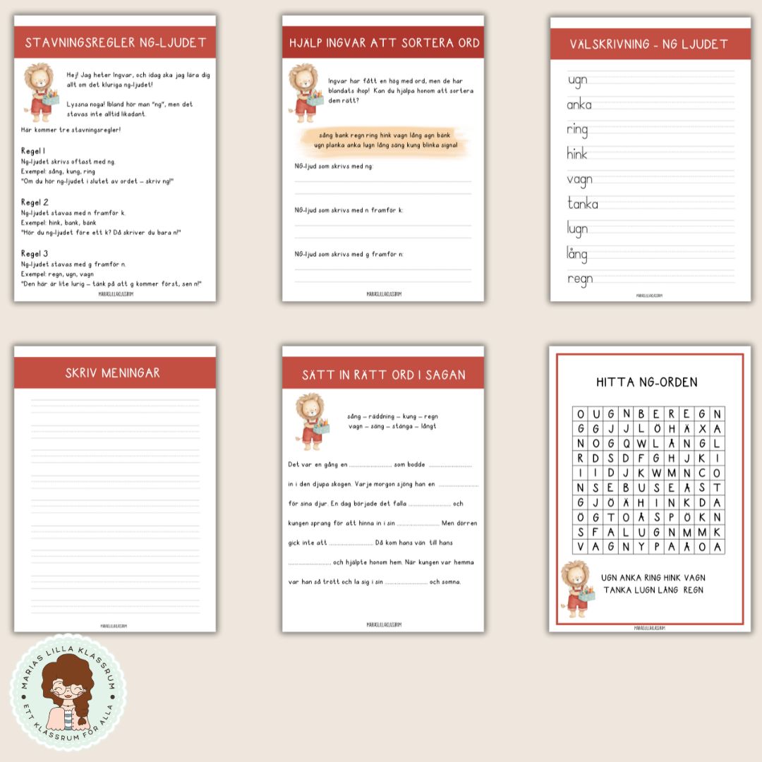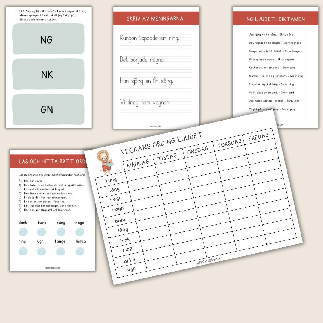 I det här materialet får du lära dig hur ng-ljudet stavas på olika sätt.