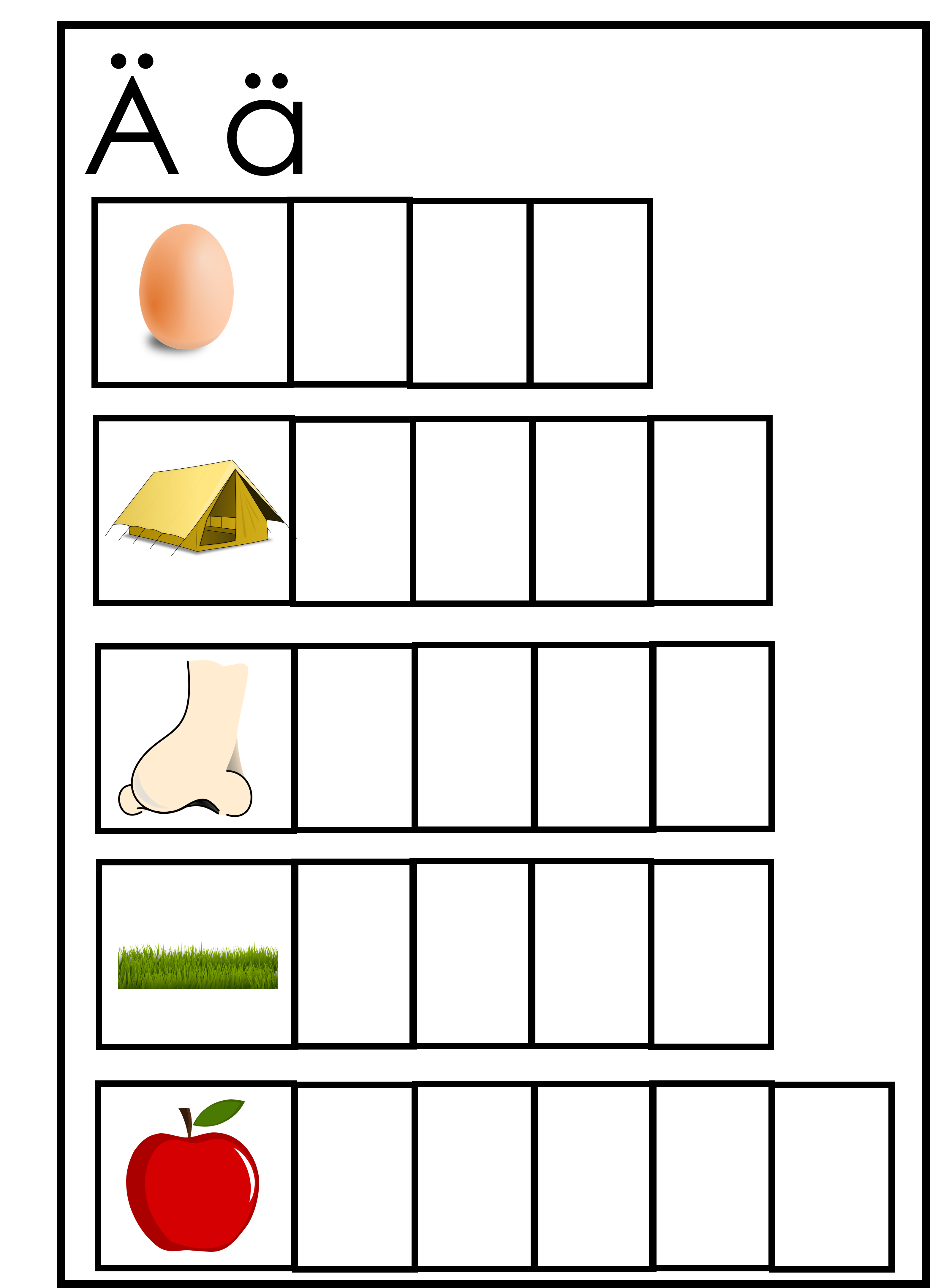 Materialet innehåller brickor för bokstäverna n-ö ej bokstäverna q och w och z har bara fyra ord, 14 st samt små bokstavskort med både stora och små bokstäver.