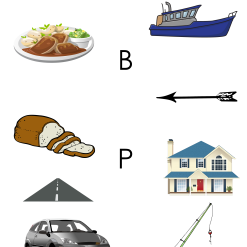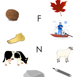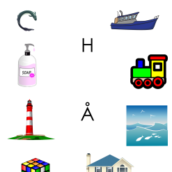 Materialet är stenciler om bokstavsljud i orden. Barnet ska säga orden och lyssna om det finns någon av i ordet och sedan dra streck till den bokstav vars ljud barnet hör. Det finns även bilder som inte innehåller någon av bokstavsljuden.