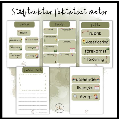 Laminera gärna stödstrukturen och fäst på klassrumsväggen. Utgå ex. ifrån Cirkelmodellen och fyll i stödorden tillsammans och därefter modellera och skriva faktatext om ex. blåsippan. Eleverna ges möjligheten att fylla i stödord och skriva samt rita tillhörande bild. Går att anpassa så man kan mjukstarta redan i åk 1 och skriva korta faxtatexter och så småningom skriva längre och mer avancerade faktatexter upp till mellanstadiet om så önskas.