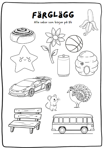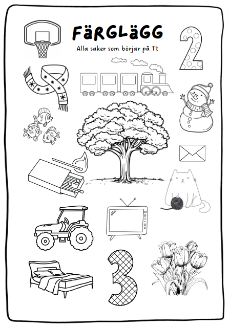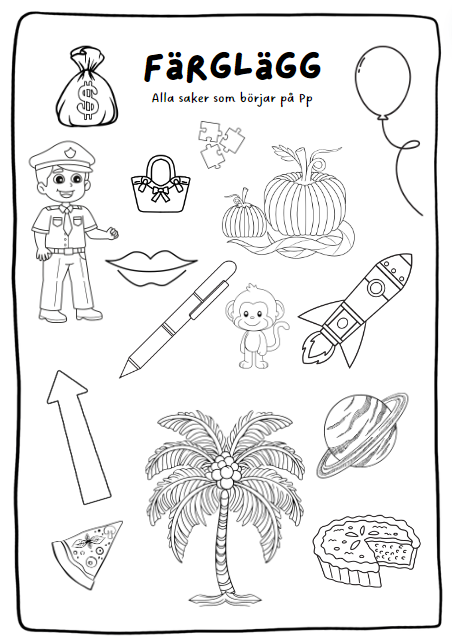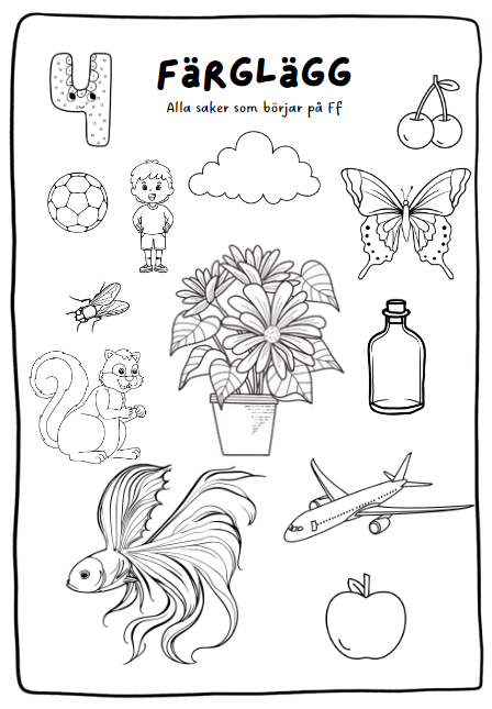 - en färgläggningssida till varje bokstav. Färglägg alla saker som börjar på till exempel Mm
