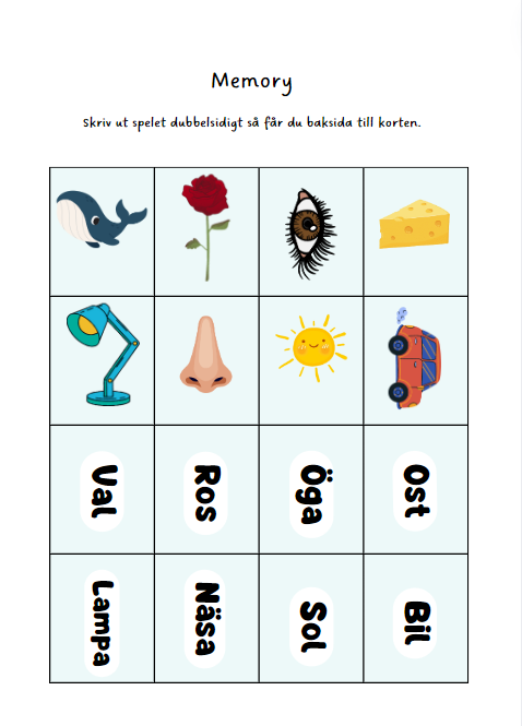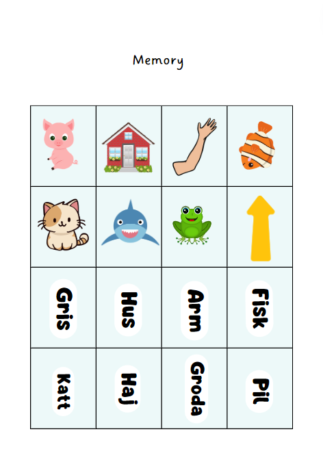 - Memory med 32 par där eleverna skall para ihop bild med rätt ord