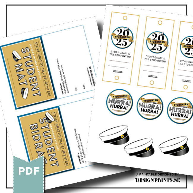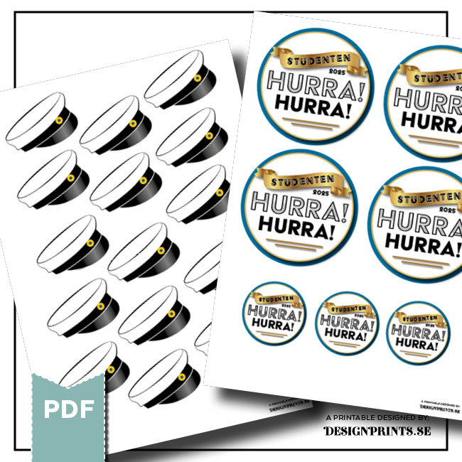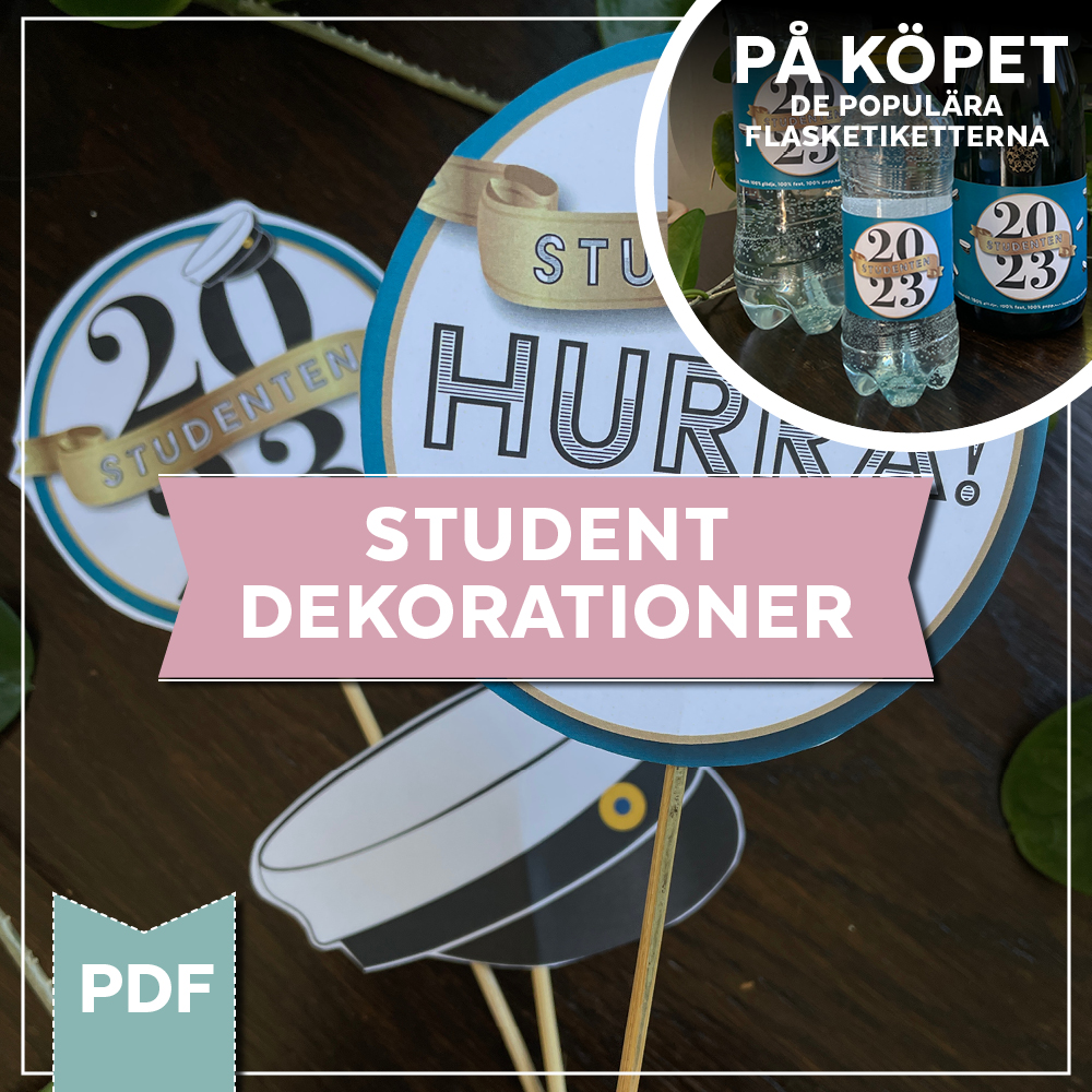 Massa fina dekorationer att skriva ut för att pynta inför studenten. Perfekt till klassrummet, avslutningsmiddag eller kanske till en fest hemma.