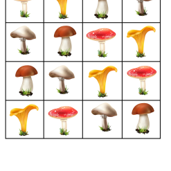 Materialet innehåller 8 brickor och 8 facit samt 32 höstkort.
