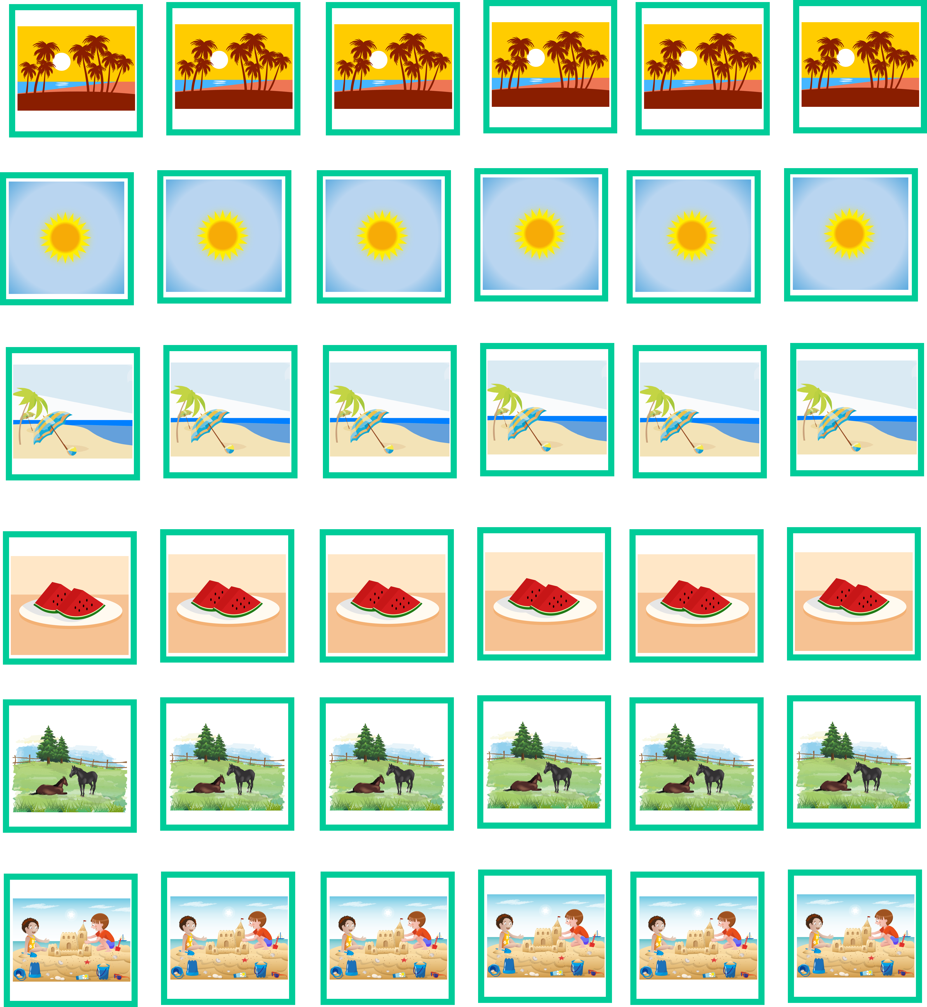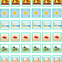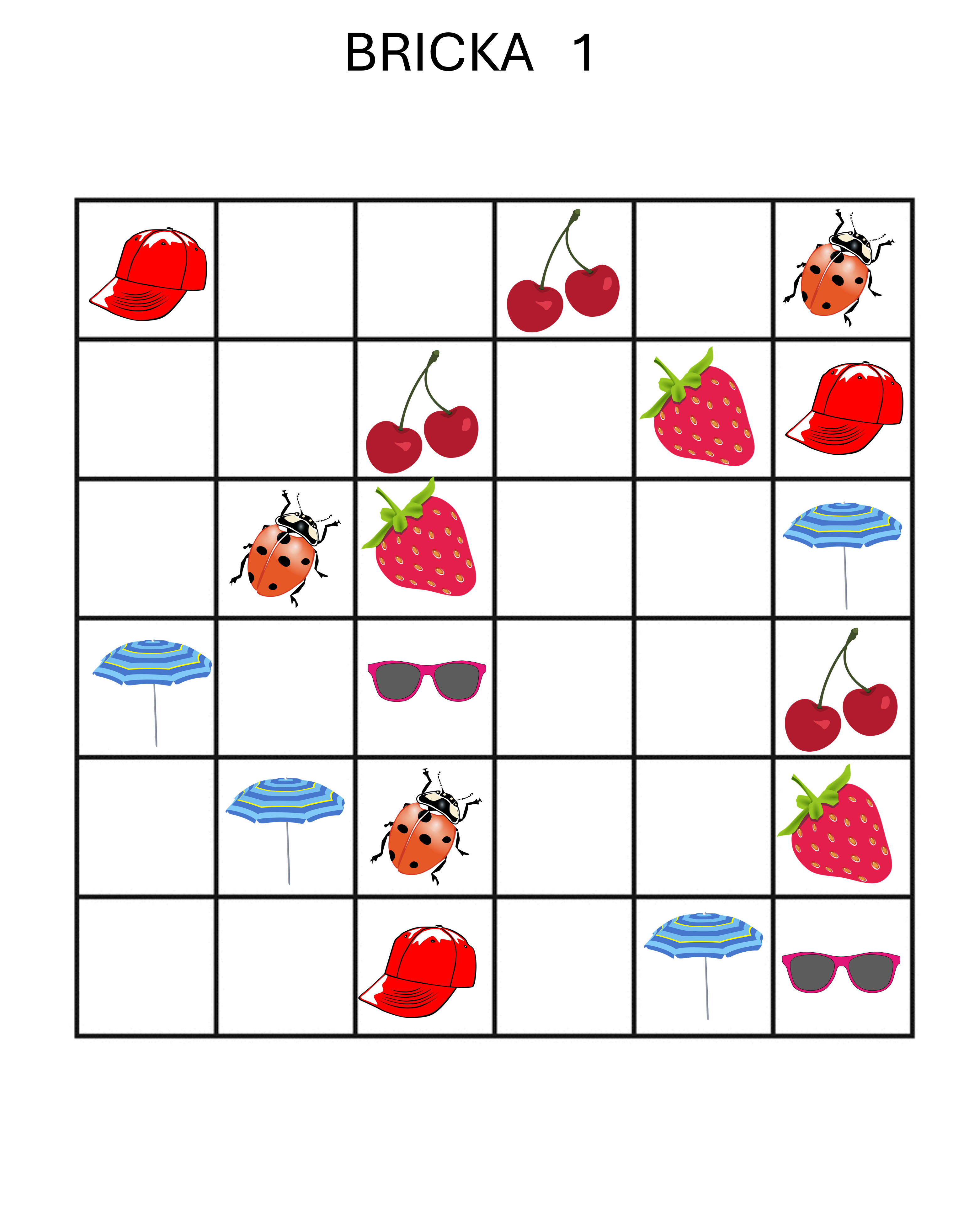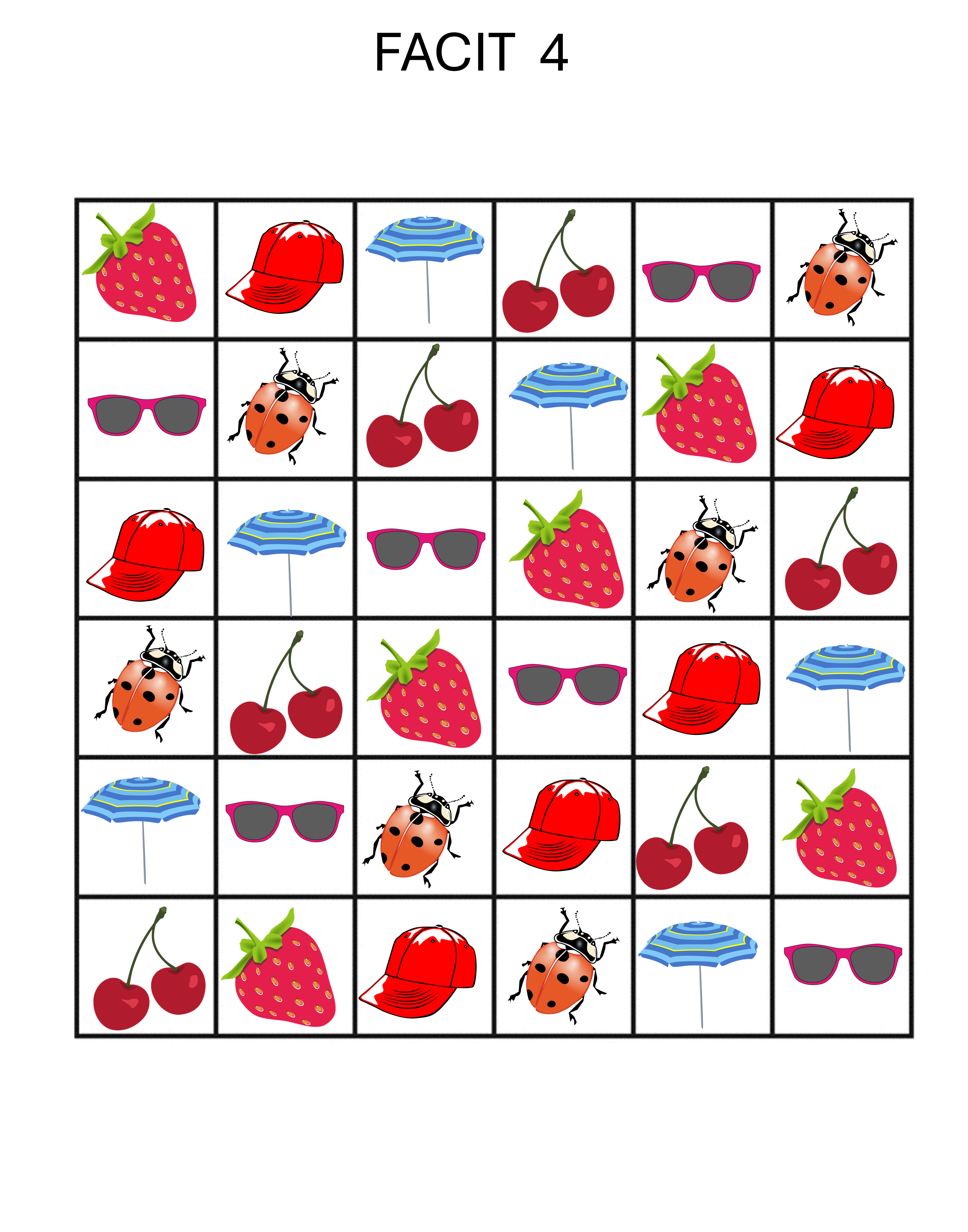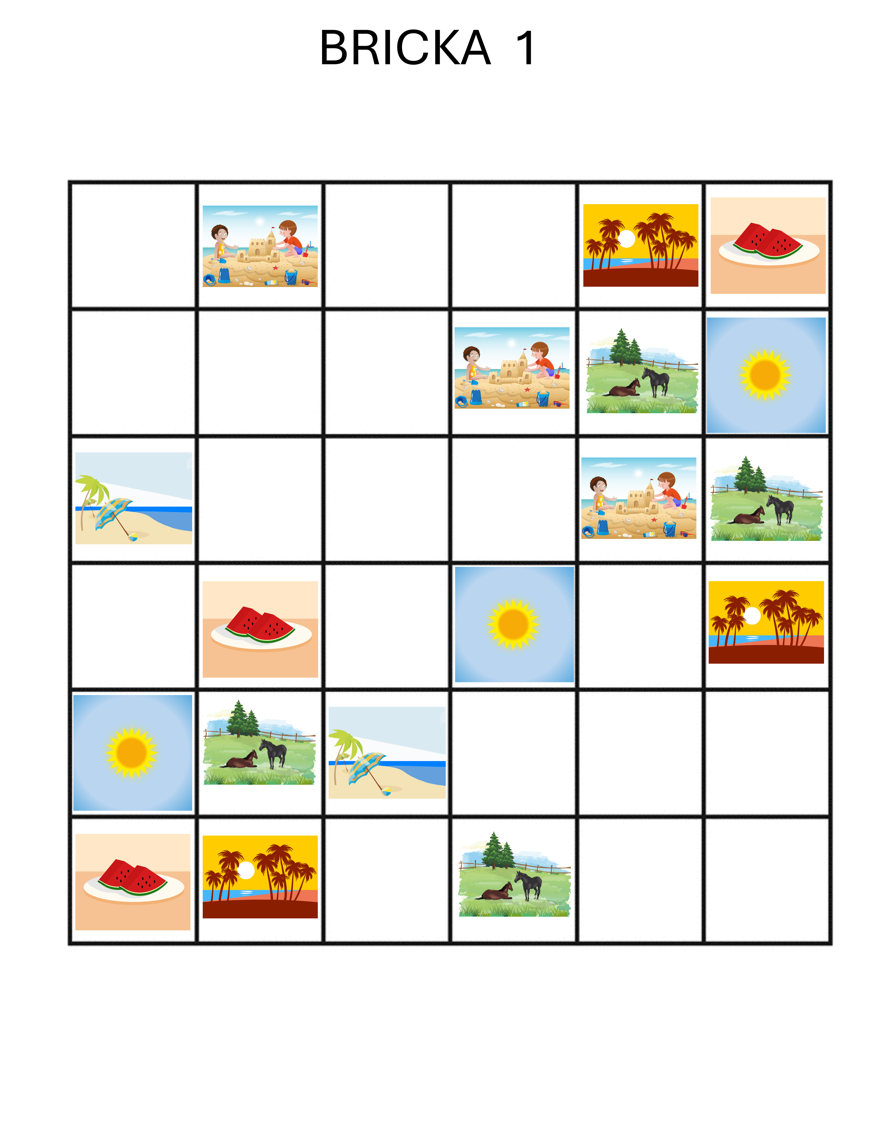 Materialet innehåller 6 brickor och 6 facit samt 72 sommarkort.