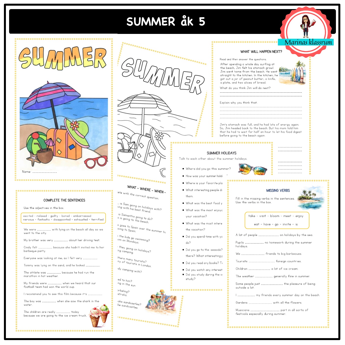Ett arbetshäfte som tränar engelska med tema sommar.