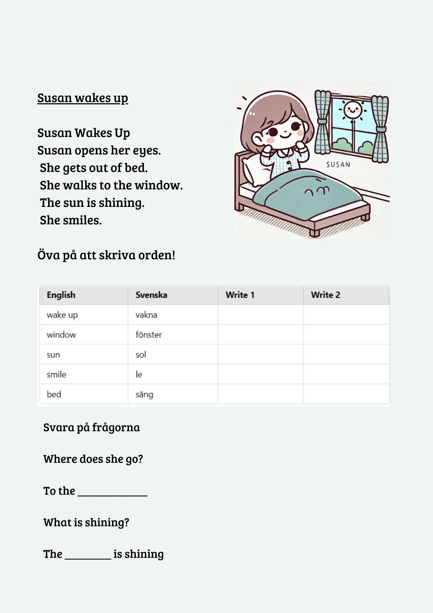 Detta ingår i Susan Wakes up - Läsförståelse engelska (bas)