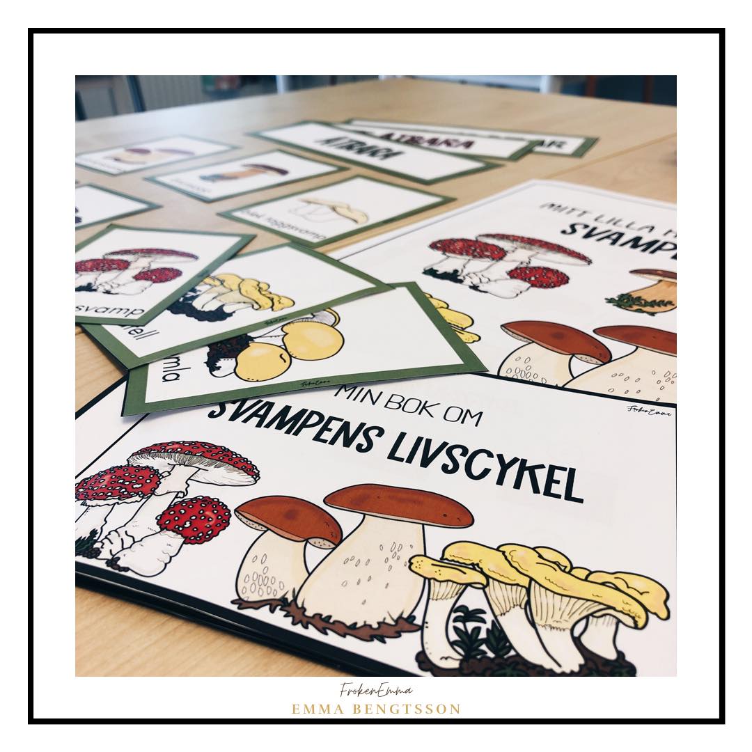 Materialet innehåller totalt 42 kort. 33 kort är svampar och resten är svampens delar. Använd i undervisningen eller sätt upp i klassrummet.