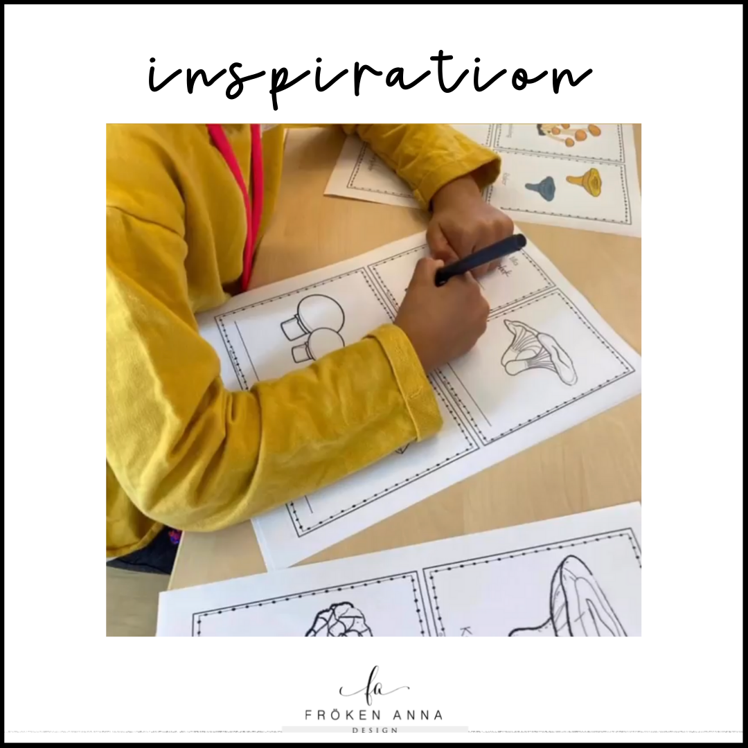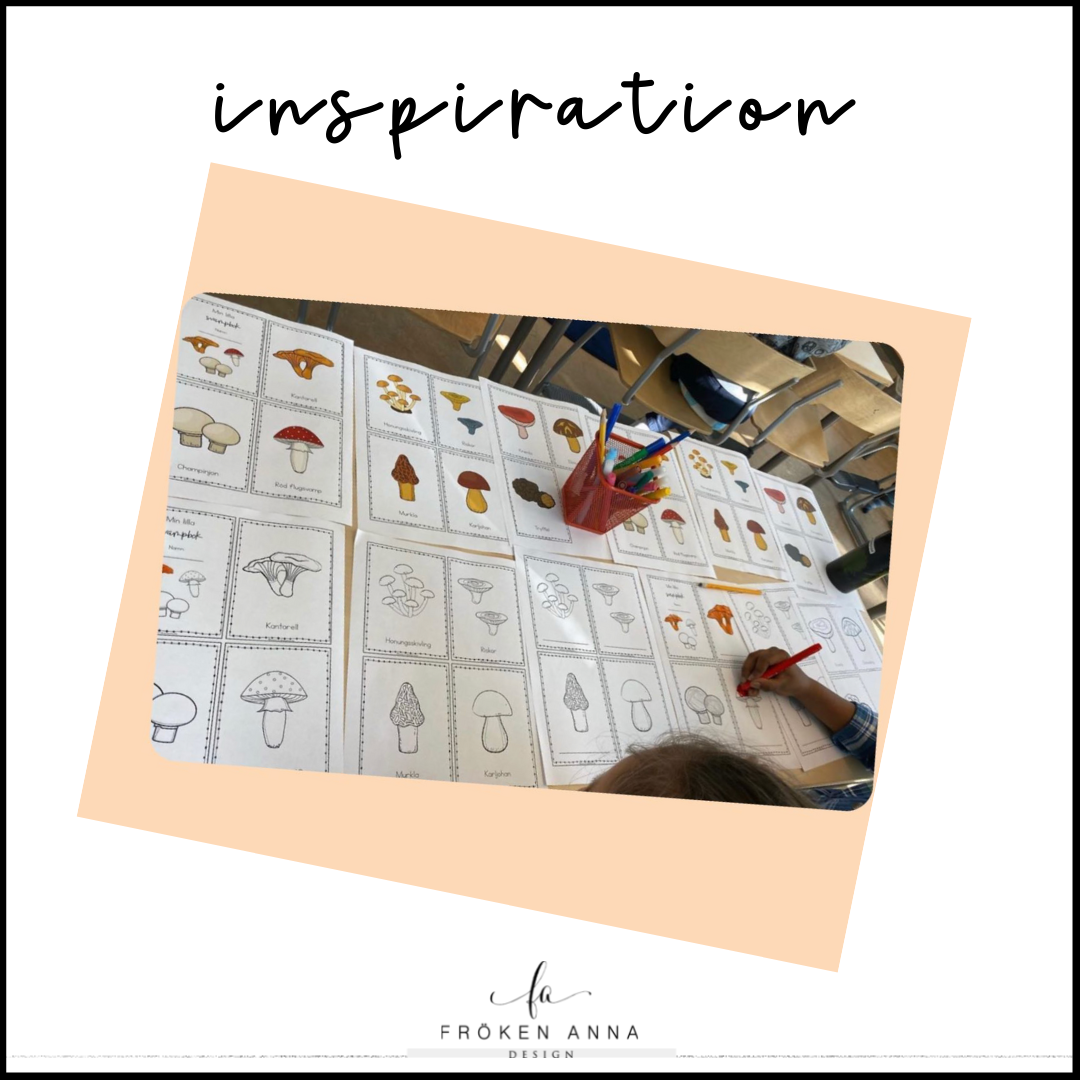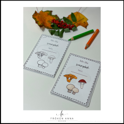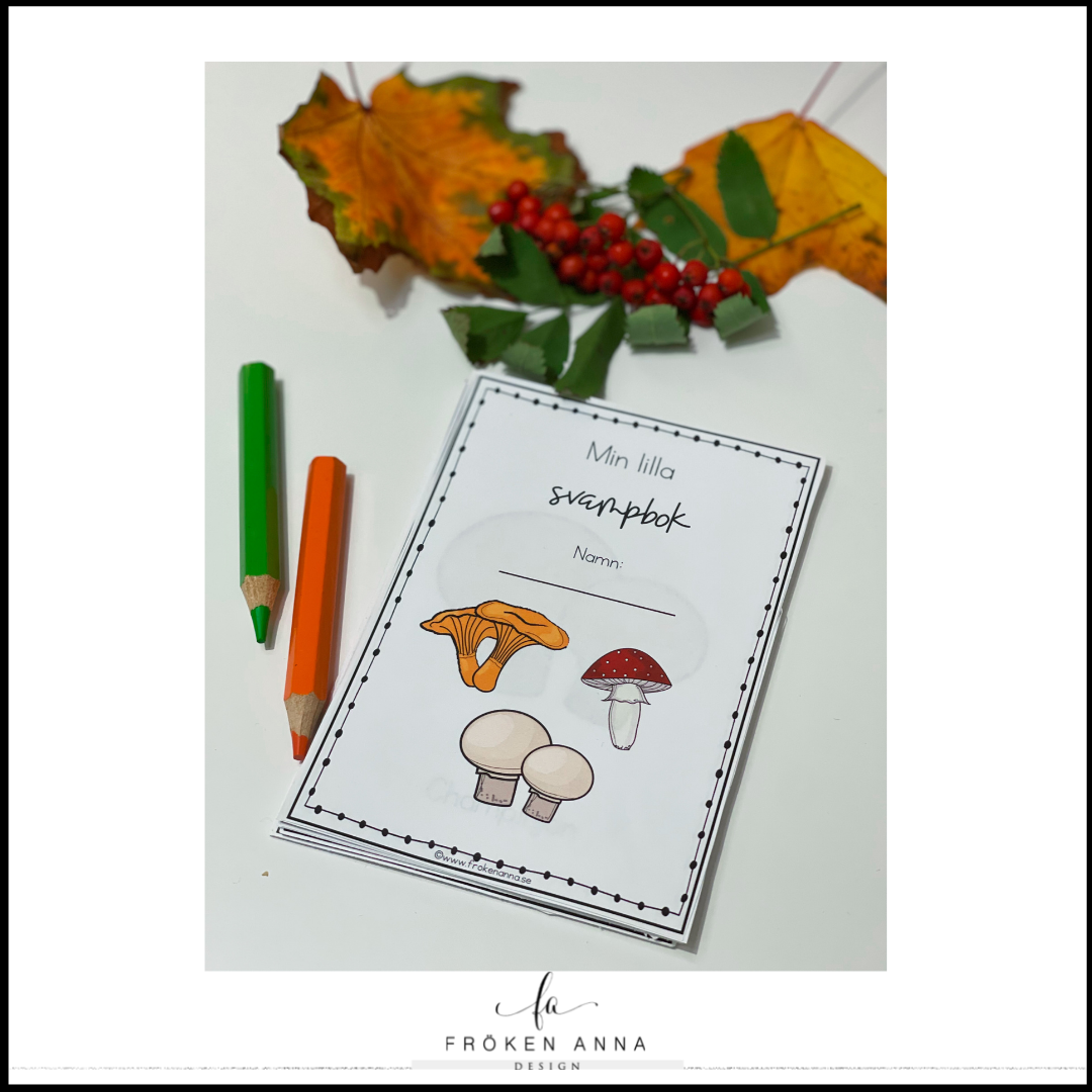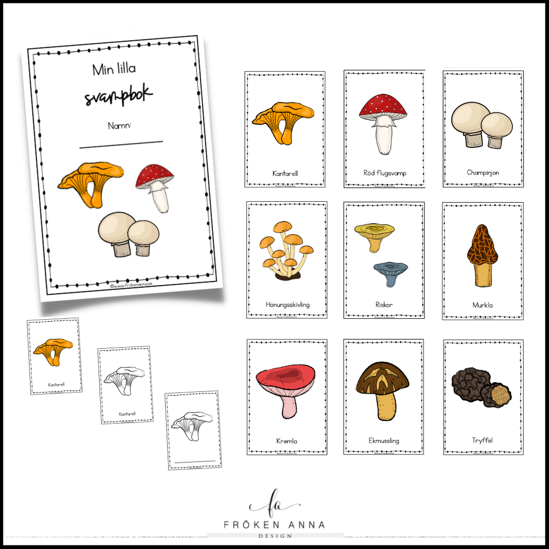 Låt eleverna knåpa ihop en egen liten svampbok, med några av våra vanligaste svampar. Materialet finns i tre nivåer så alla elever kan delta: i färg med svampens namn, i svartvitt med svampens namn samt i svartvitt för att skriva själv.