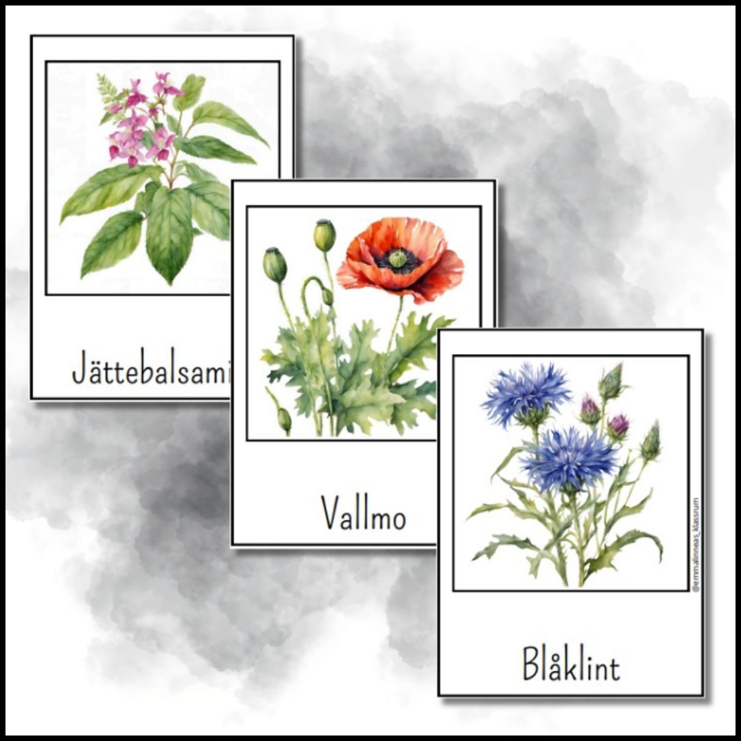 Här kommer bildkort med 36 vanligt förekommande blommor i Sverige. De passar perfekt i ett arbete med årstidsväxlingar, i en bilduppgift eller kanske bara som dekoration? Användningsområdena är flera!
