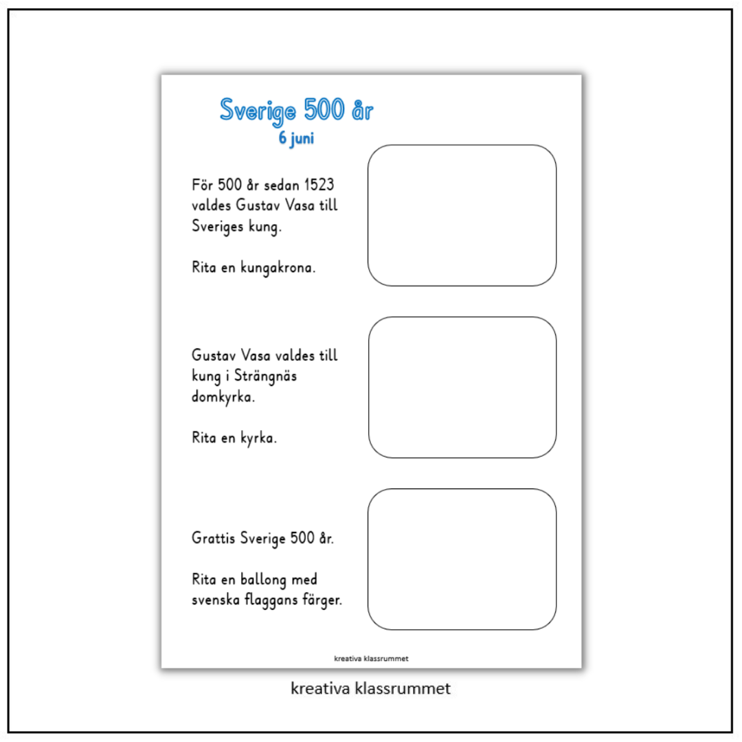 Ett arbetsblad där eleven får läsa en kort faktatext och sedan rita en bild till texten.