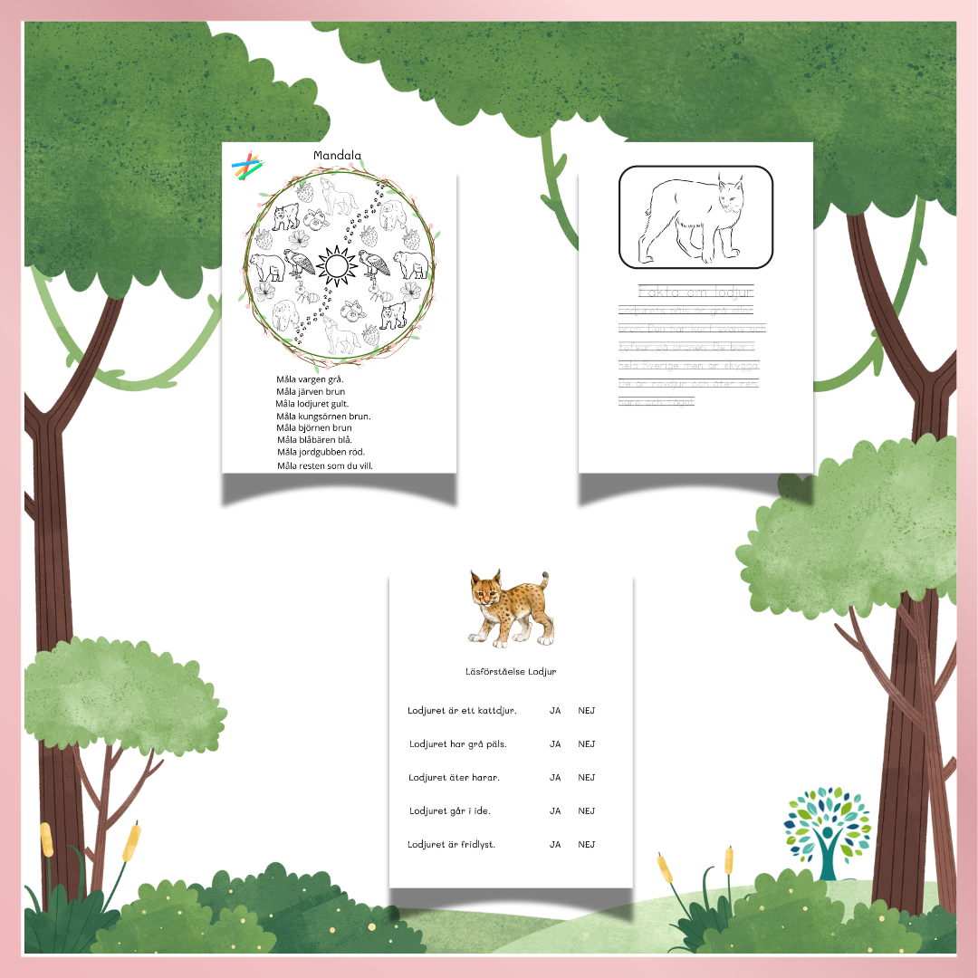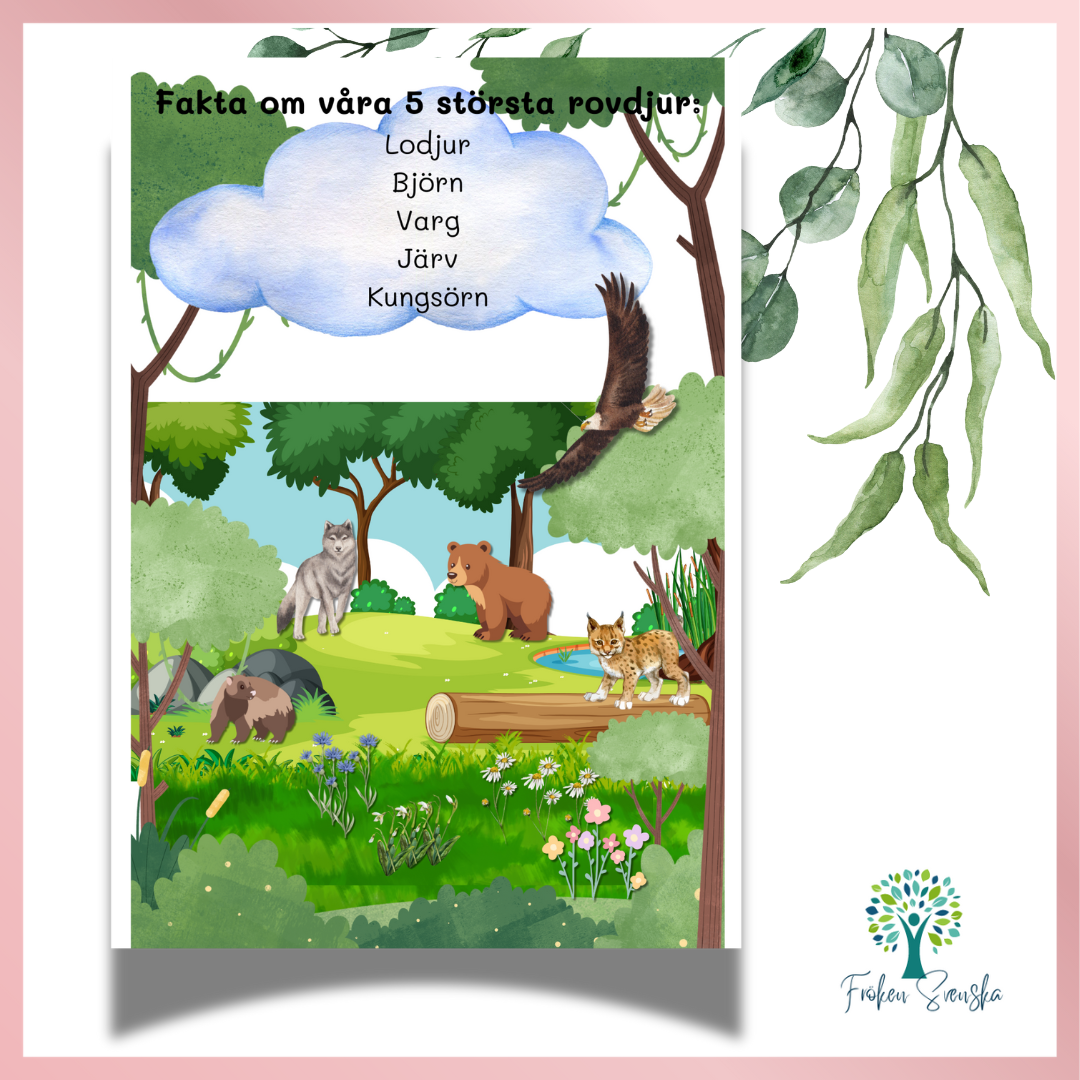 Ett material om Sveriges 5 största rovdjur: varg, lodjur, kungsörn, björn och järv.