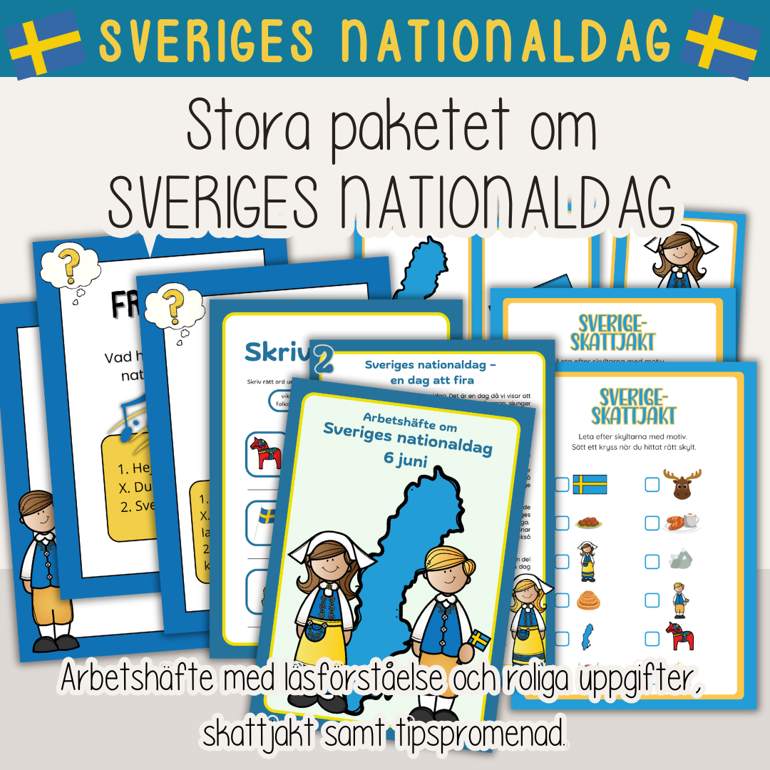 Fira nationaldagen med mitt nationaldagspaket. Paketet innehåller tre olika material: