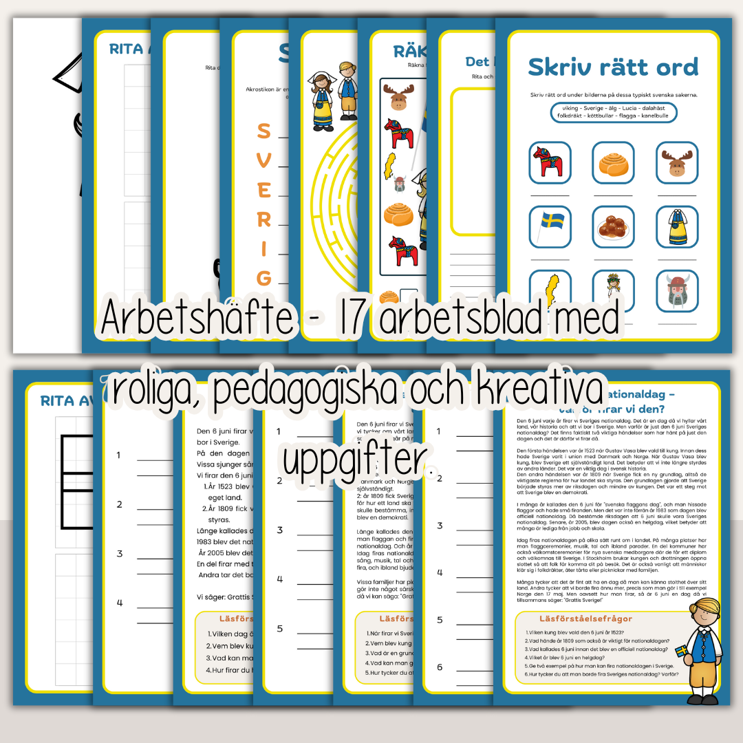 - Arbetshäfte om Sveriges nationaldag – 17 sidor med faktatexter och andra roliga uppgifter.