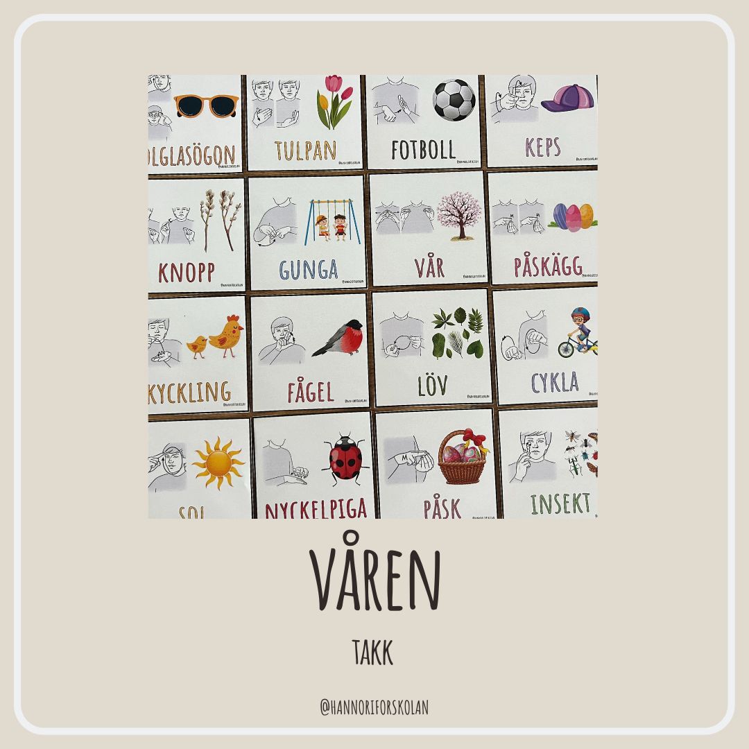 TAKK våren – i samband med samling kan det vara roligt att få presentera ett tecken. Låt barnen testa och utför det sedan alla tillsammans. Ett TAKK-tecken i veckan är toppen!