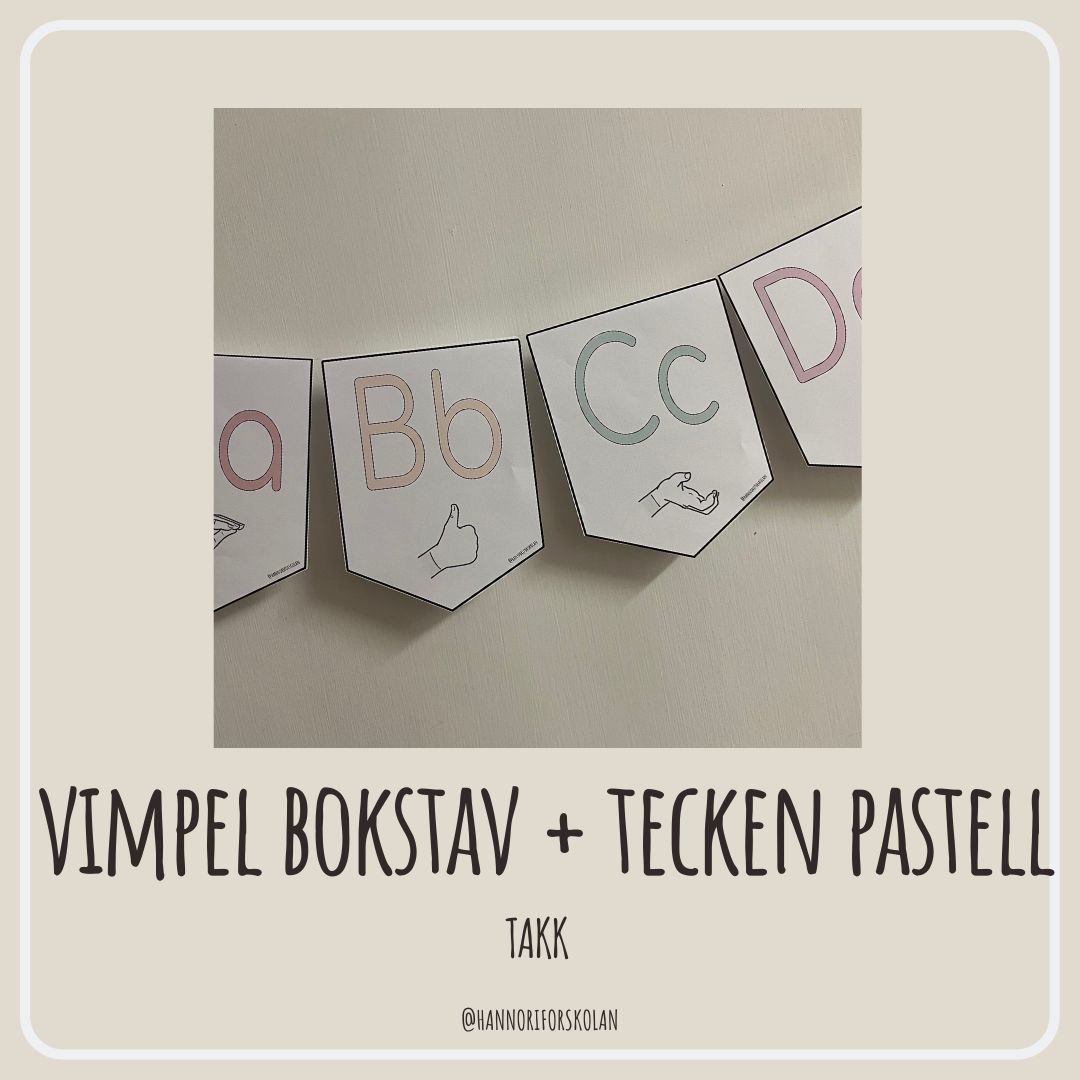 TAKK vimpel bokstav + tecken pastell – materialet går att sätta upp i er pedagogiska miljö som en vimpel eller använda i en språksamling. Den här filen består av bokstäver i pastellfärg. I vår butik kan ni snart hitta samma fil med en färgstark layout.