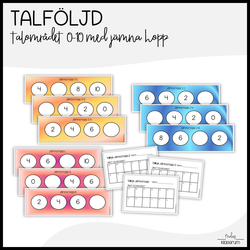 Skriv vilket tal som saknas för att tallinjen ska vara korrekt, inom talområdet 0-10 med jämna hopp.