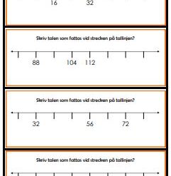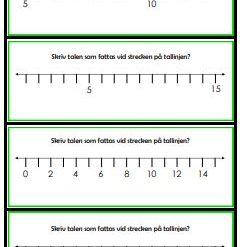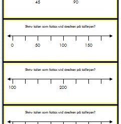 Träna inför de nationella proven. 67 kort i 5 olika nivåer, vilket är ca 3 blad per nivå. Skriv ut, klipp isär och laminera eller använd som arbetsblad. Låt sedan eleverna träna tallinjen på sin nivå. Även inom de olika nivåerna så finns det viss nivåskillnad. Nivåerna är färgmarkerade. Finns även tomma kort för eleverna att skapa egna tallinjer.