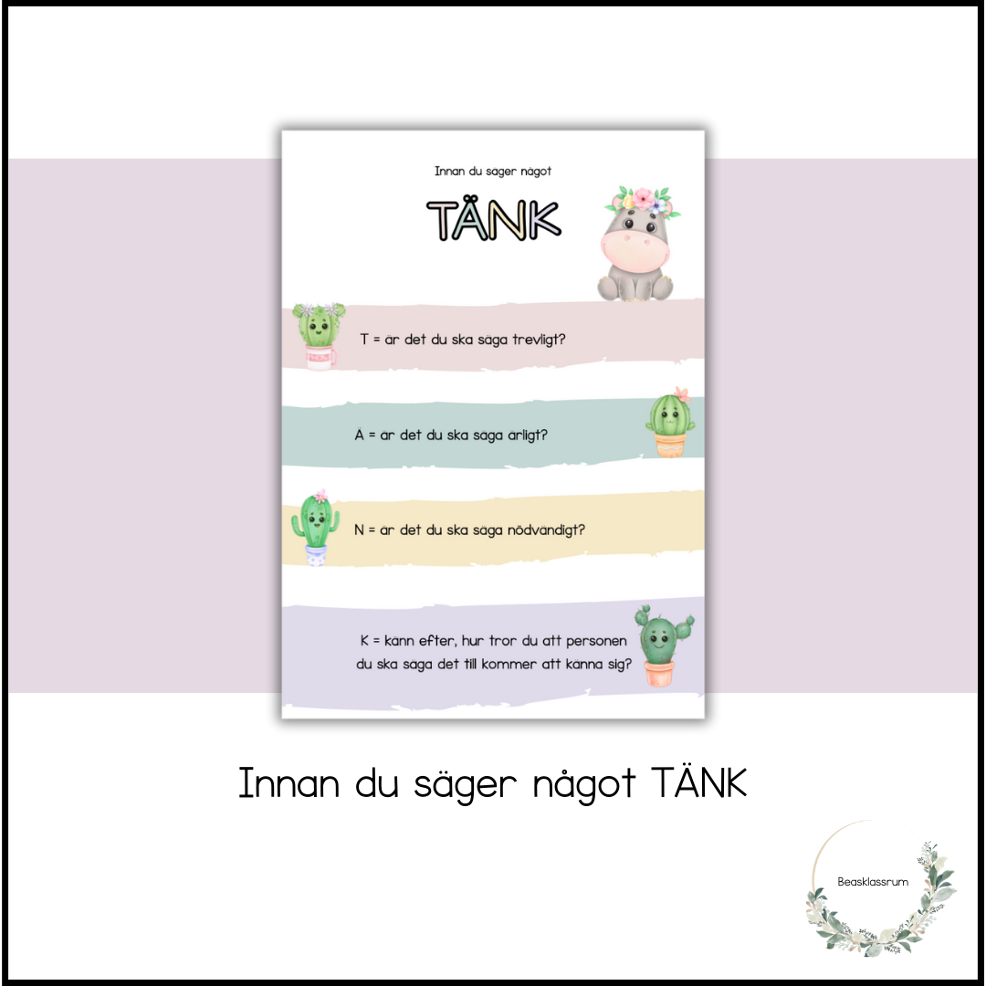 Poster att använda för att prata med eleverna om hur viktigt det är att tänka till innan man säger något till en kompis.