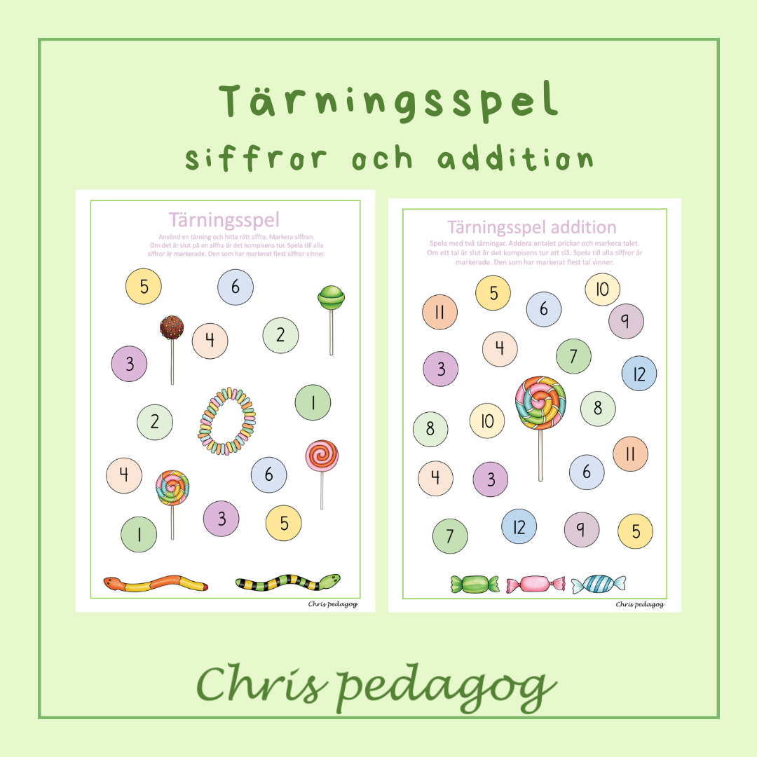 Två tärningsspel med låg svårighetsgrad. Spel 1 – spelarna slår en tärning och markerar rätt siffra. Spelet finns i två varianter, ett tar lite kortare tid än det andra. Spel 2 – spelarna använder två tärningar, adderar talen och markerar rätt siffra.