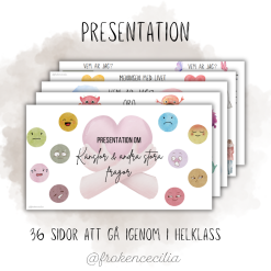 Ett temaarbete bestående av presentation, elevhäfte och lärarhandledning (totalt 75 sidor)! Perfekt för dig som vill stärka din grupp eller bara ha ett rolig arbete som stärker individerna.