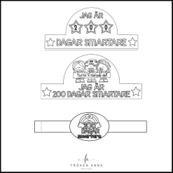 Temapaket för er som vill fira 200 skoldagar. Ett arbetshäfte innehållandes 7 sidor, två kronor och ett armband ingår. Skyltar för att räkna skoldagarna hittar ni här.