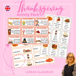 Thanksgiving Activity Pack är en samling med uppgifter att arbeta med på engelskalektionerna för att lära eleverna mer om Thanksgiving. Jag rekommenderar att börja med läsförståelsetextnerna. Dessa texter finns i 3 nivåer med läsförståelsefrågor. Jobba igenom texterna, så att eleverna förstår vad högtiden handlar om. Eleverna kan med fördel svara digitalt eller i sin skrivbok, då det inte finns så mycket utrymme på sidan med text. Ordlistorna är också bra att gå igenom innan ni börjar med uppgifterna.
