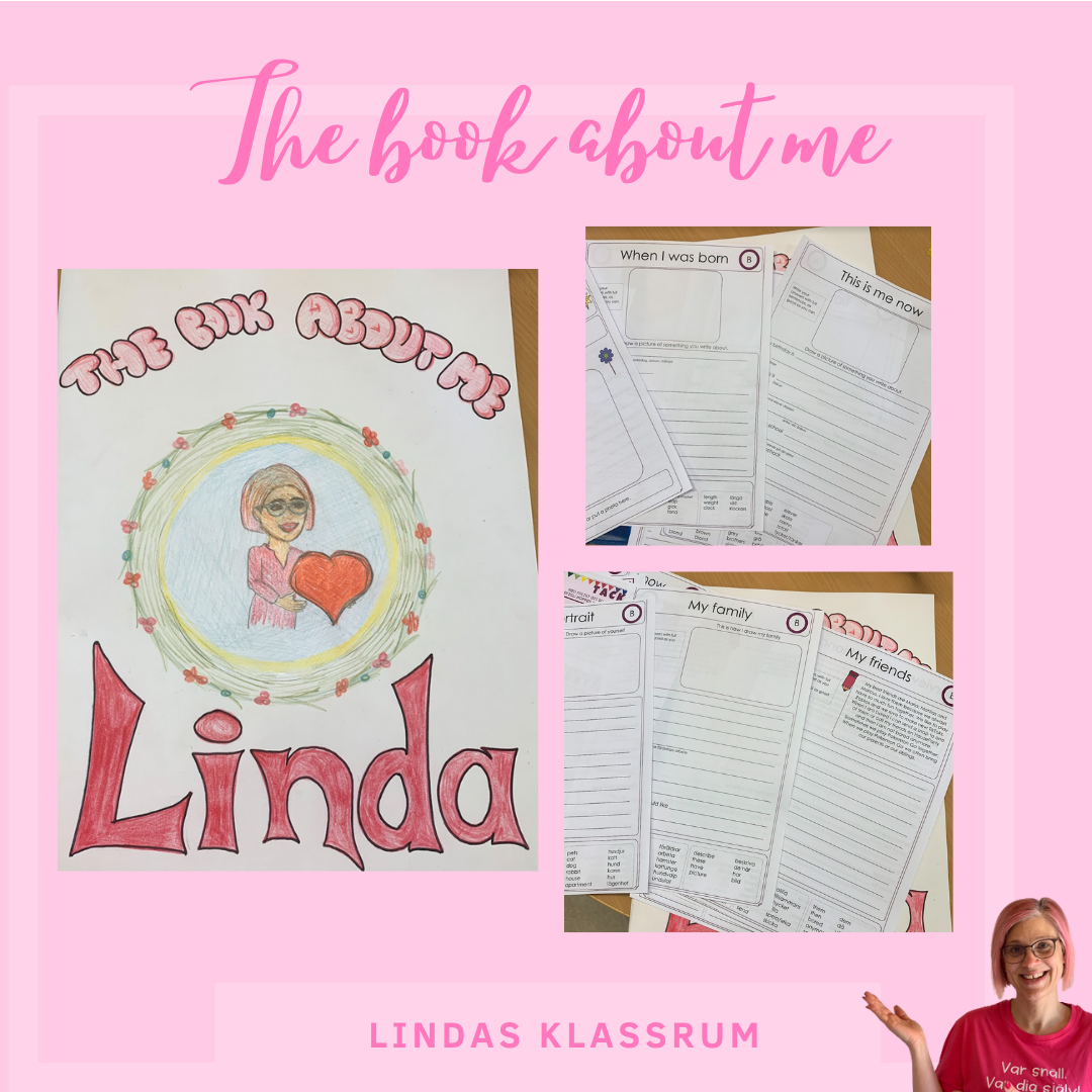 Material på 25 sidor för eleverna. 14 sidor med ”the book about me”, 7 av sidorna finns i en enklare och en svårare version. Utvärdering finns med. Pedagogisk planering samt ett förslag på arbetsgång finns med materialet (totalt 3 sidor Pedagogisk planering + mitt förslag till planering), Koppling till LGR 22.